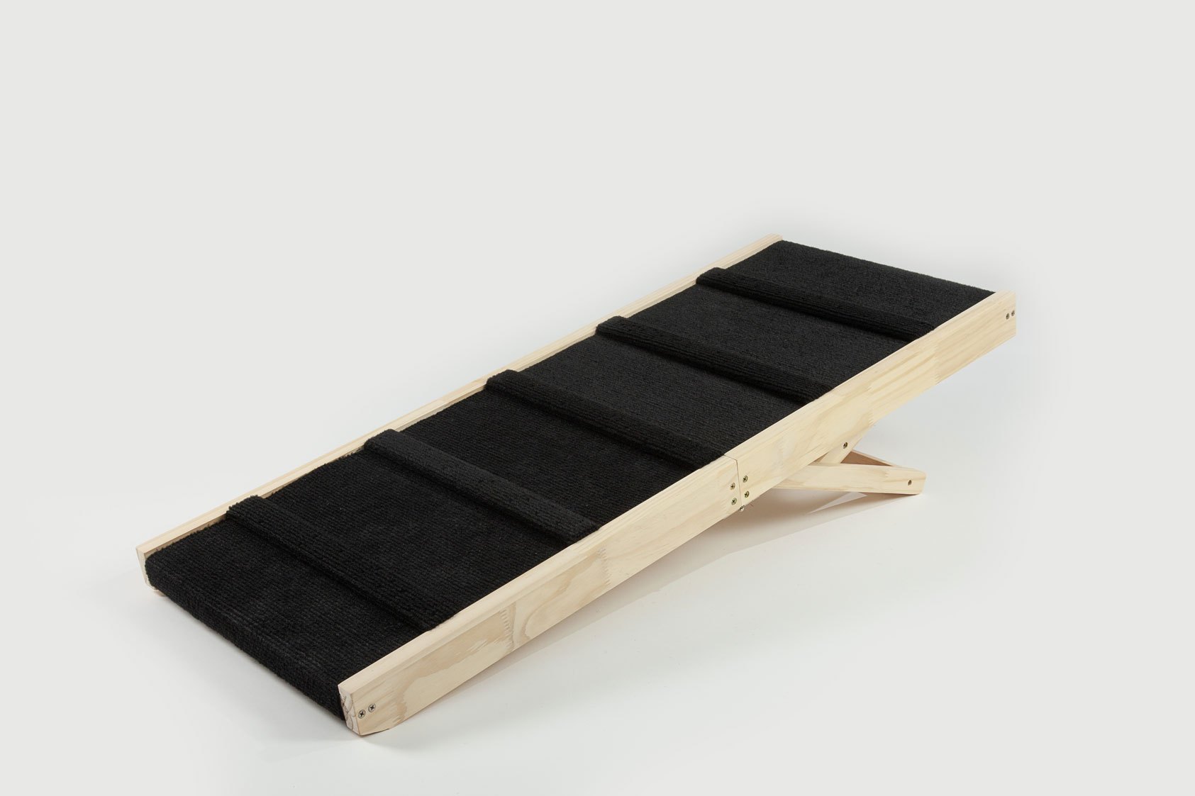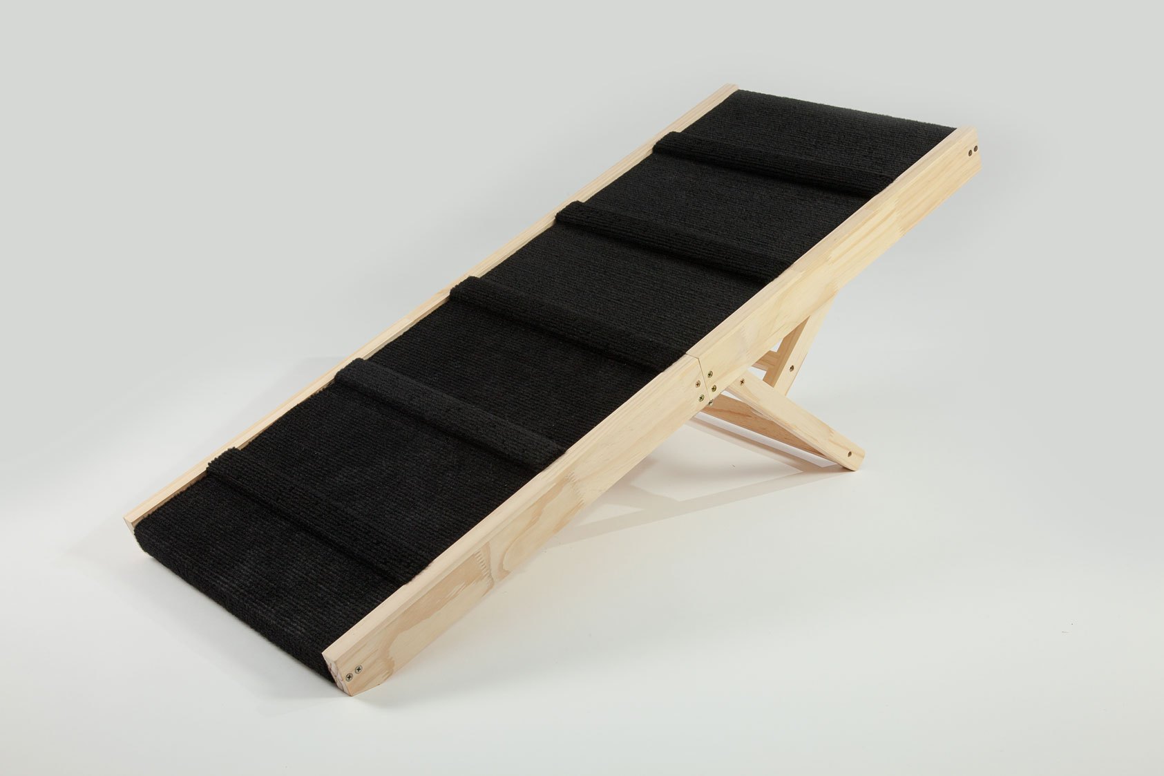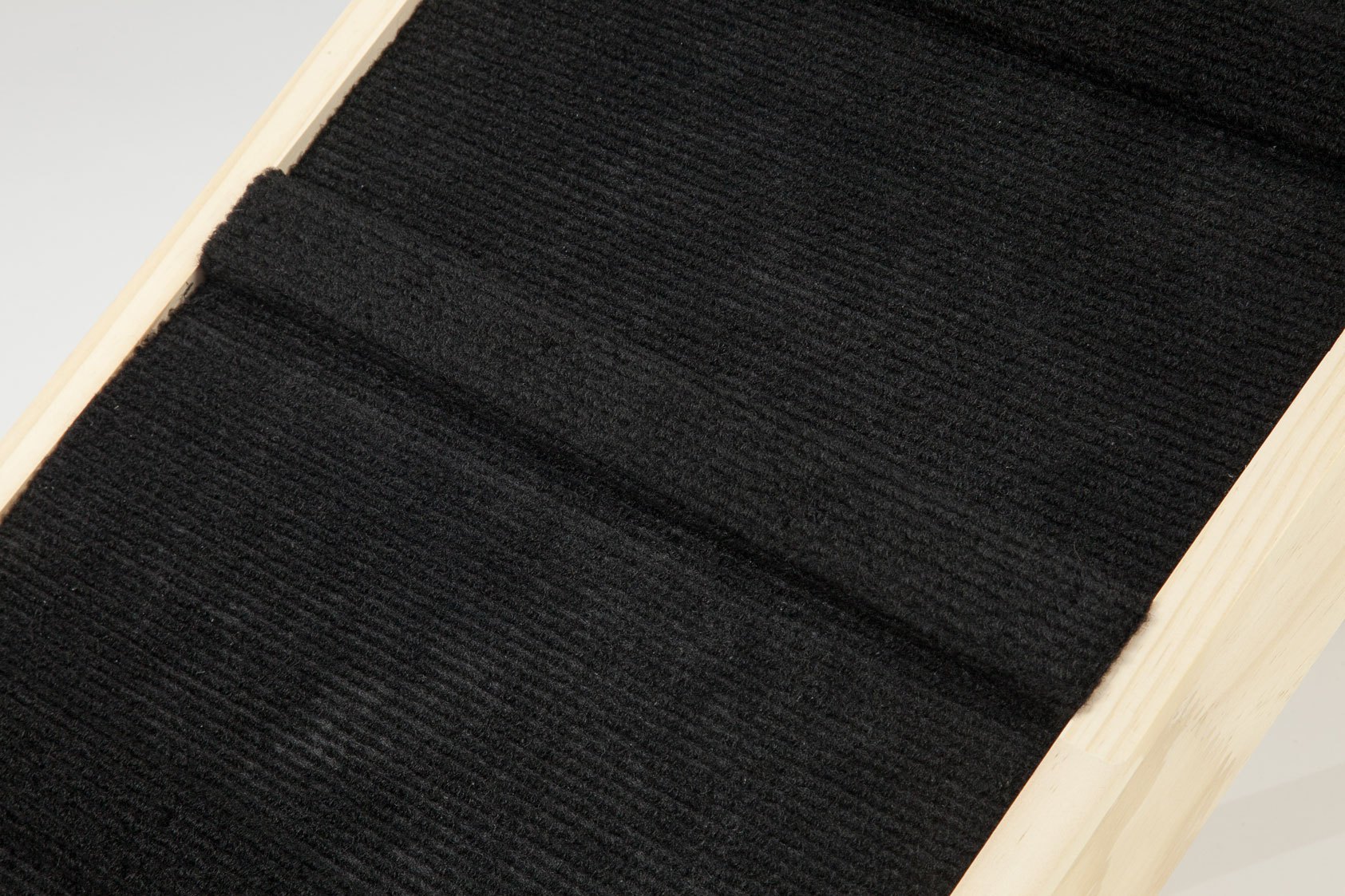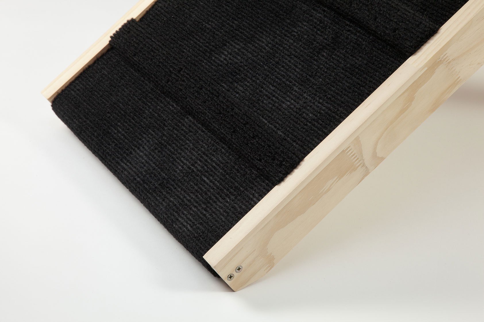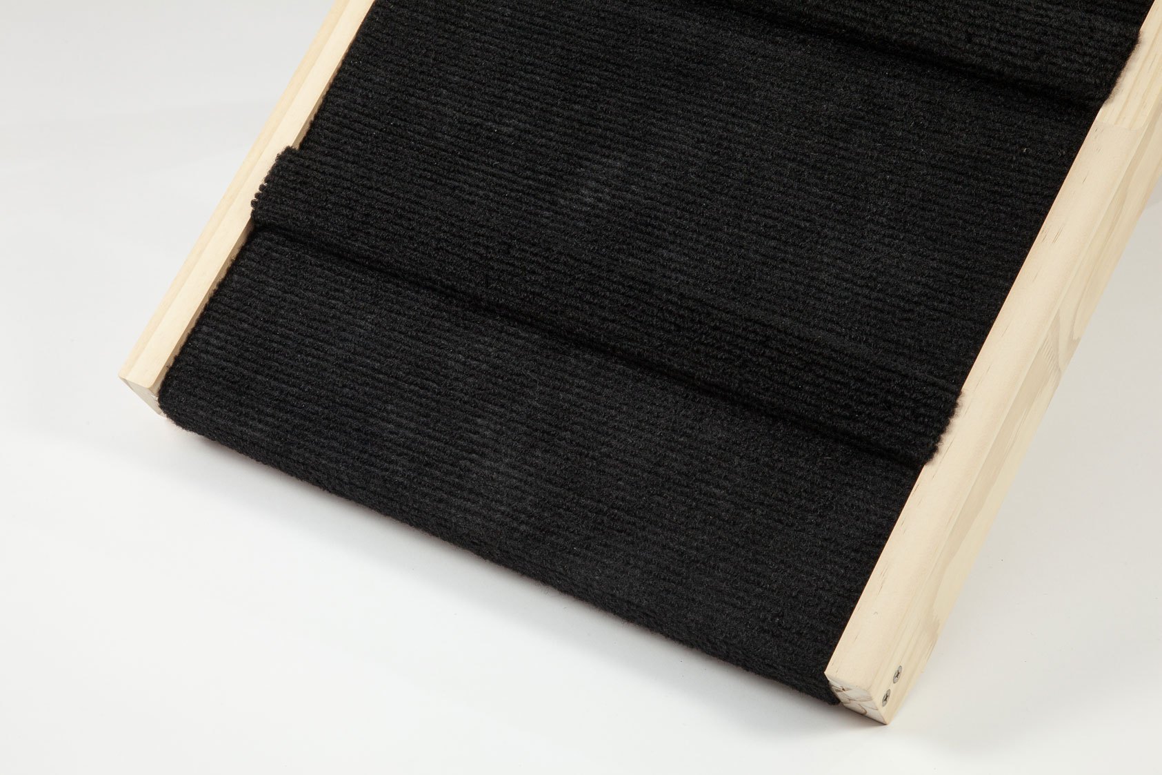 - Wooden ramp with a carpeted ladder design, dog-friendly non-slip surface