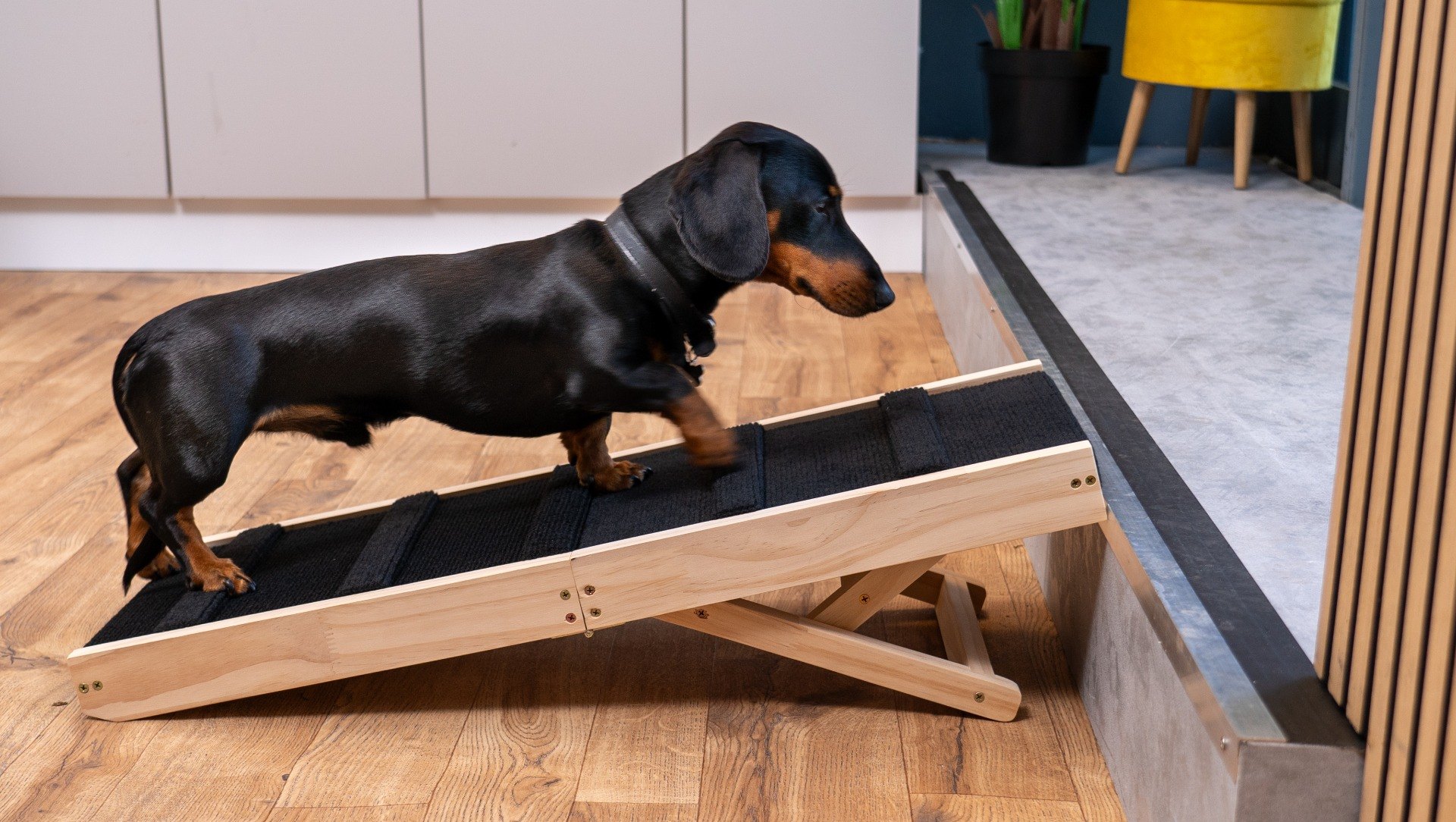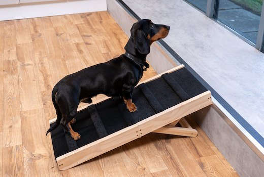 Dog ramps and pet ramps can assist animals, including dogs and cats, to overcome heights and access beds, sofas and other areas around the home. Dog ramps and pet ramps are especially beneficial to animals with mobility issues, such as arthritis and pets which are more at risk from jumping such as Dachshund. Dog ramps are also commonly used by puppies who are building confidence. Our adjustable wooden pet is adjustable to six different heights.