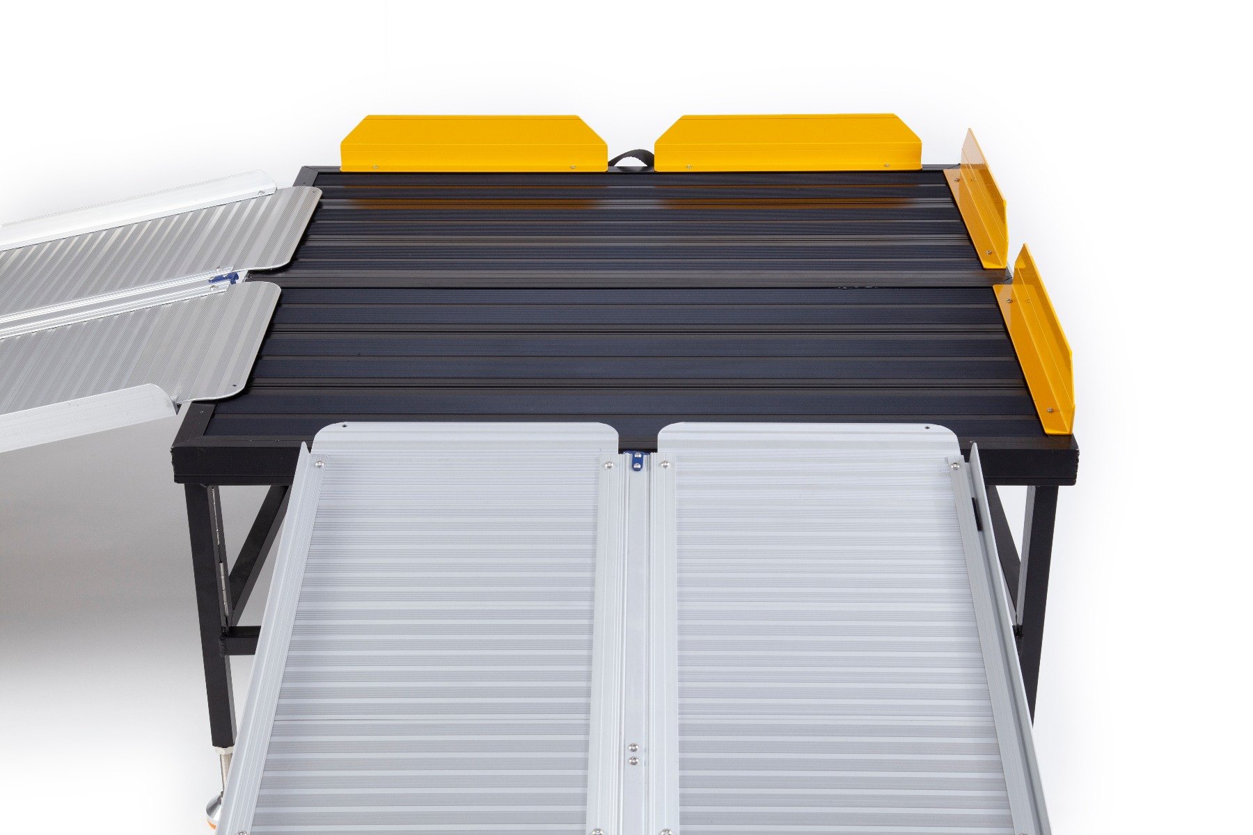 - The edges can be placed as per your personal preference meaning the platform can also be used to connect two ramps together in a straight line when needed, for example if you do not wish to carry or store one long ramp
