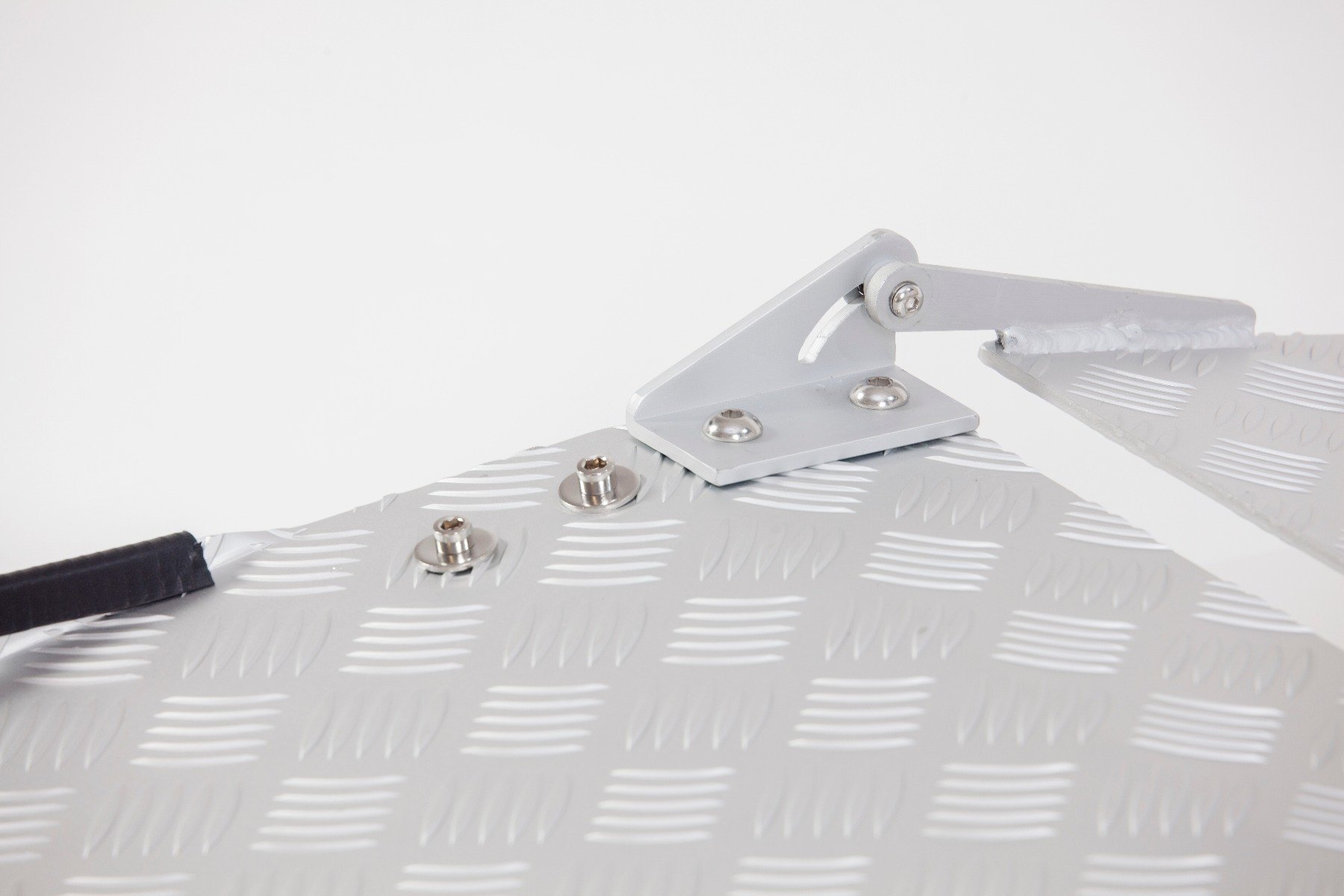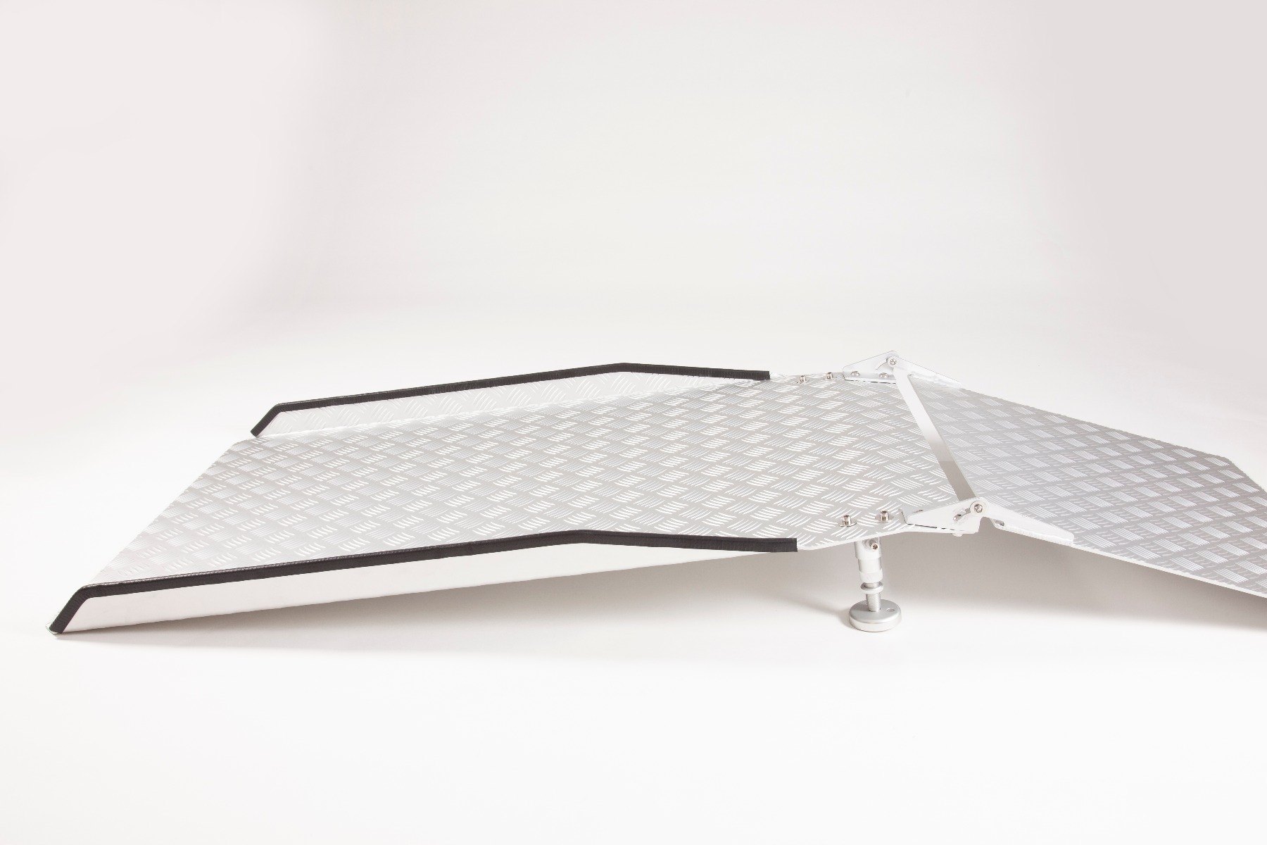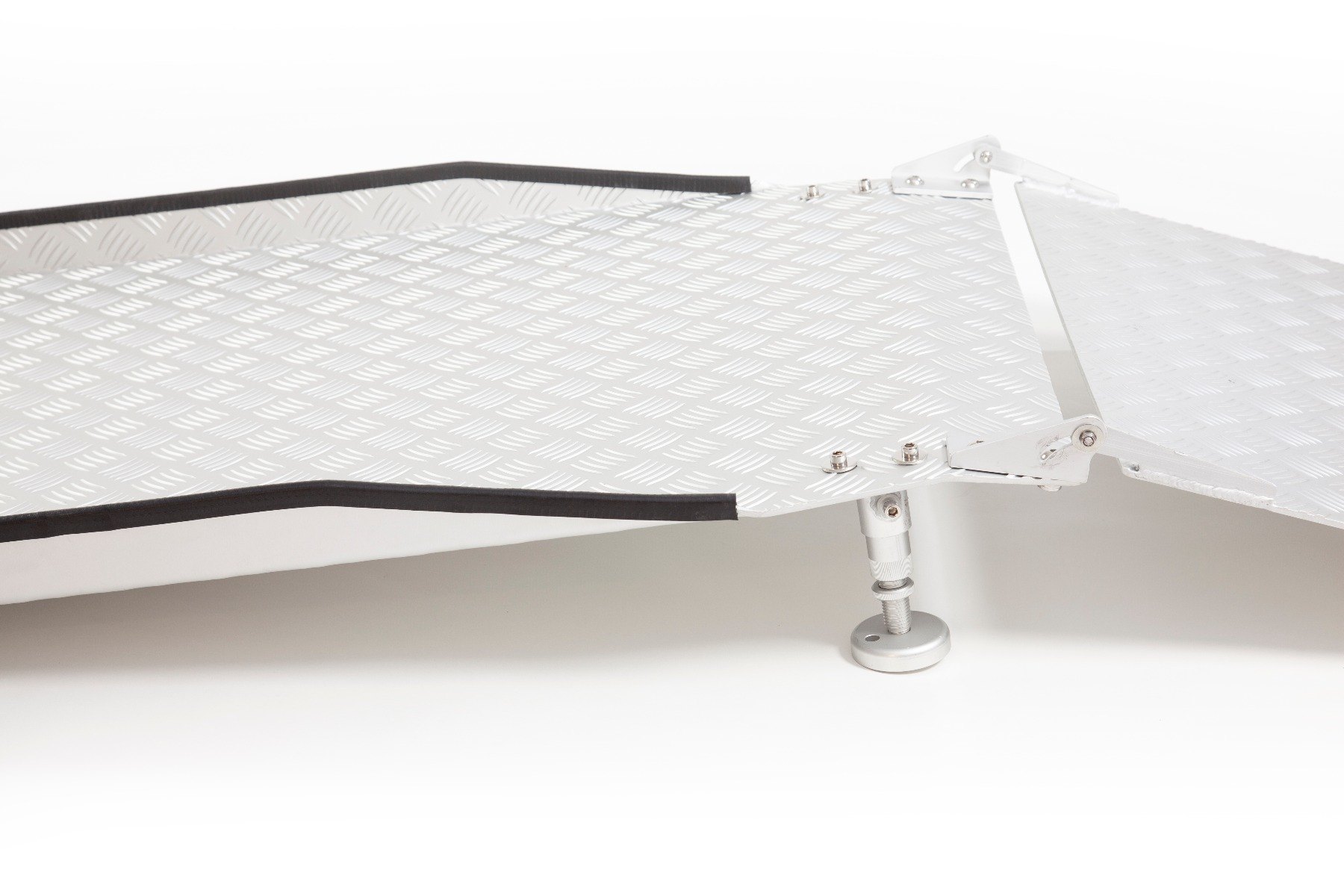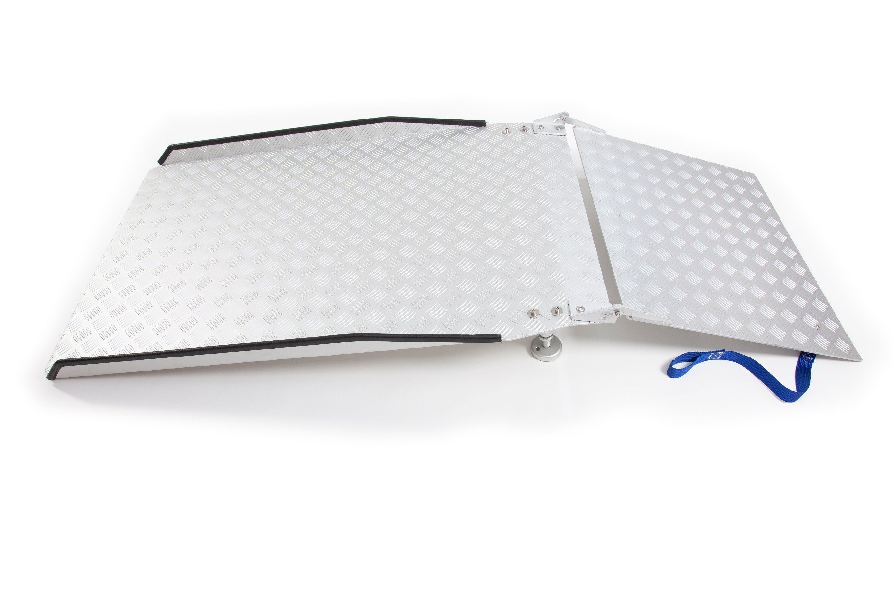 Manufactured from aluminium, this highly durable ramp supports up to 400 kg, making it ideal for wheelchairs, mobility scooters, and pedestrians. The inner ramp has a 250 kg capacity.
