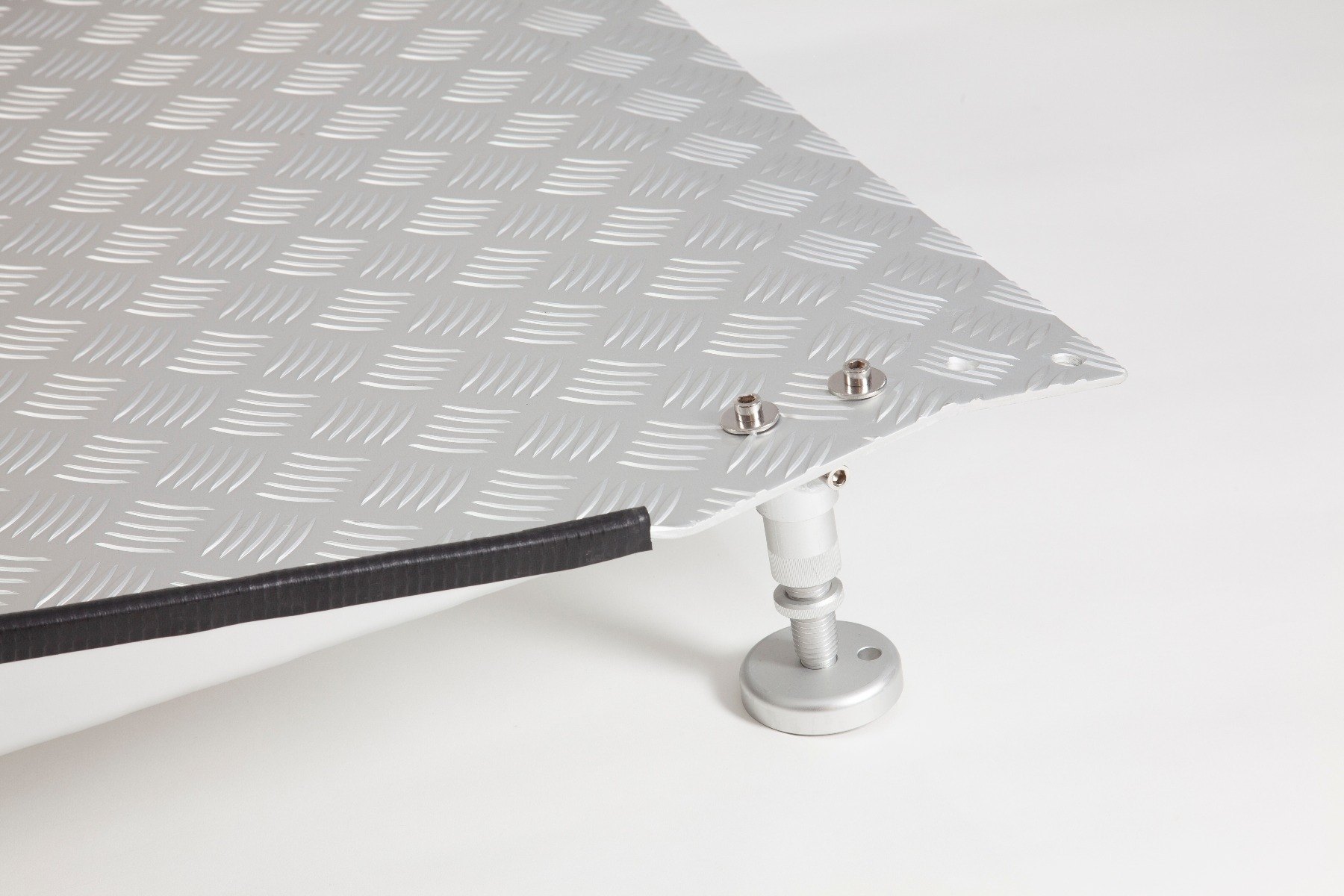 Built with the user in mind, the Adjustable Threshold Ramp with Entry Plate is easy to use. Its support legs are adjustable from 70mm to 254mm (3" – 10"), allowing you to set the ramp to a comfortable height.