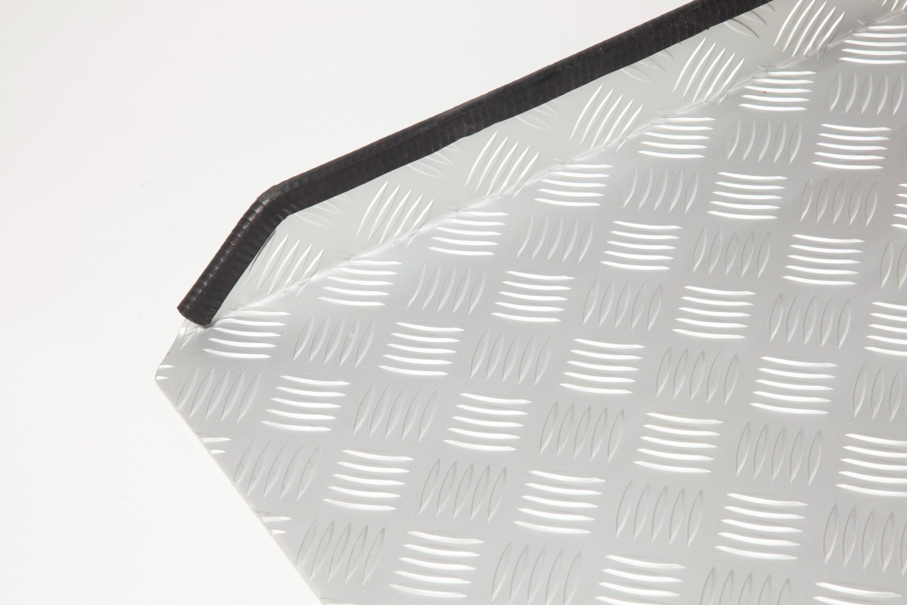 Full-width chequered anti-slip surface and contrasting safety edges for enhanced security.