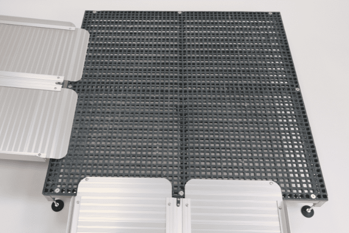 The slip-resistant open-mesh GRP surface ensures safe use in all weathers, allowing water to seamlessly drop through the ramp.