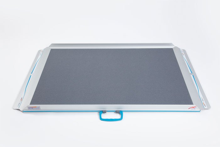 Wheelchair Ramps are provided in various widths, our standard folding wheelchair ramp is 720mm wide. The key is to check the width of your doorway to ensure the ramp will fit in the required door. In addition check the width of the wheelchair or scooter to ensure the wheelchair will fit on the chosen ramp.