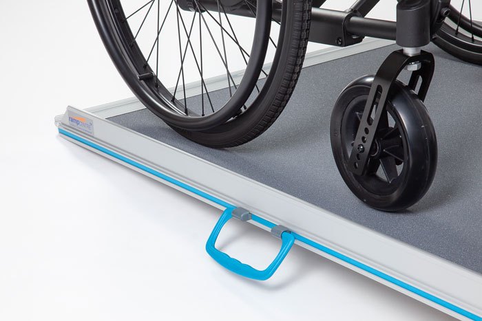 Our folding and telescopic wheelchair ramps are mainly produced from aluminium. We also offer a range of rubber threshold ramps which are made from rubber.