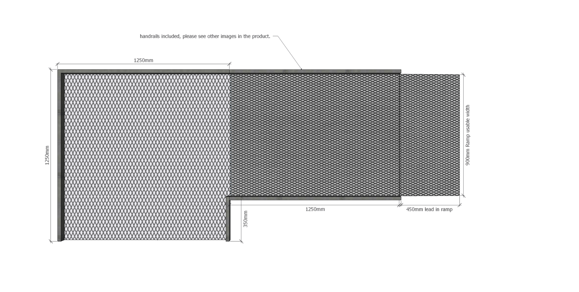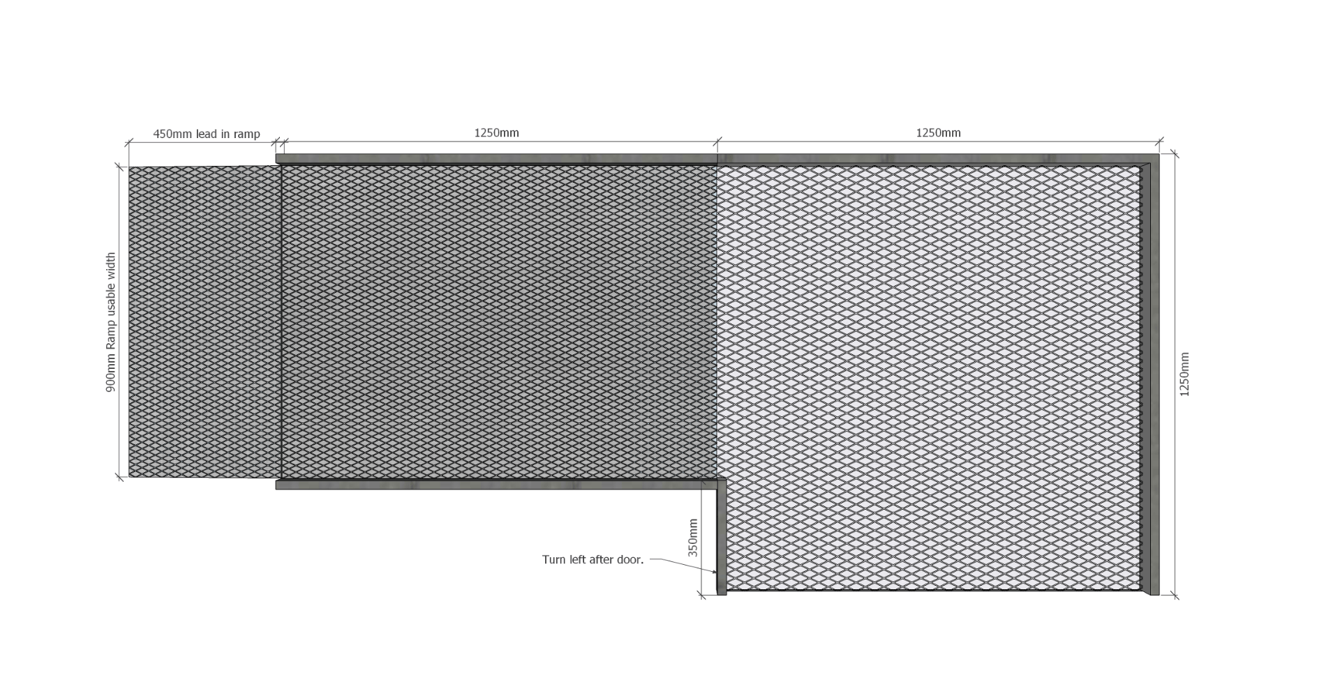 • Ramp Section: 1250mm long x 900mm wide