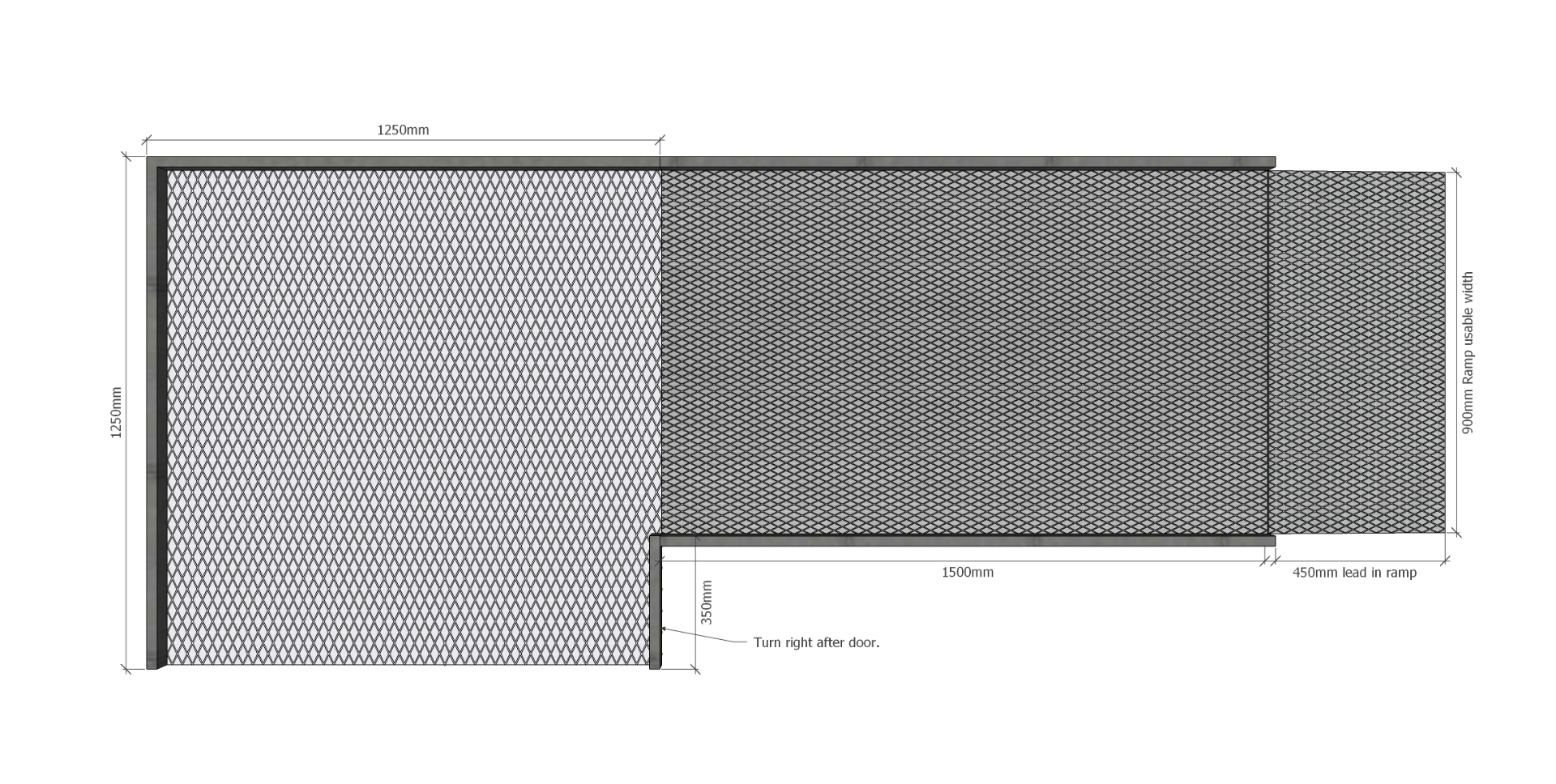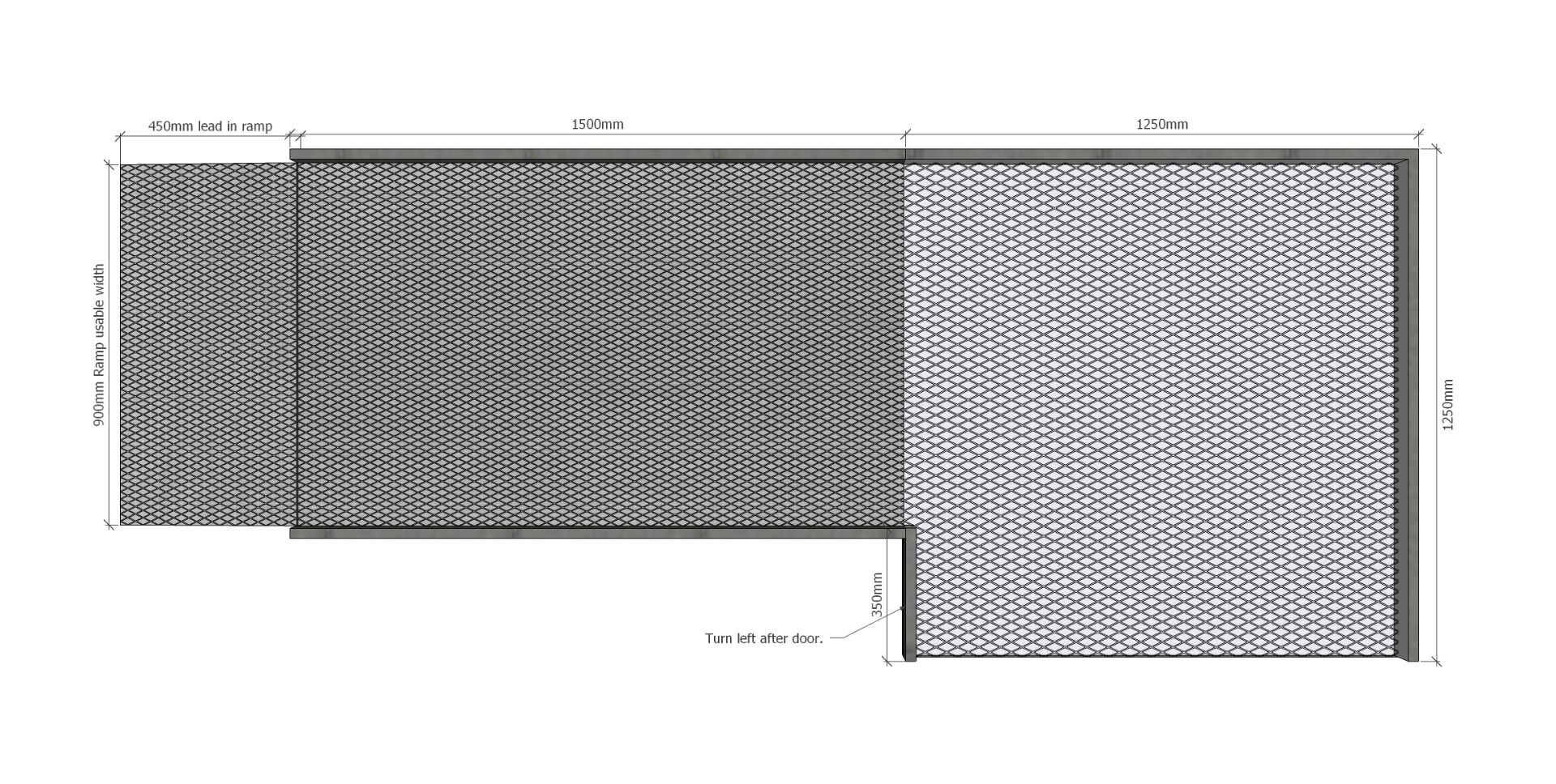 • Ramp Section: 1500mm long x 900mm wide