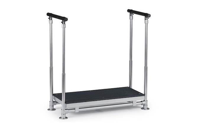 - Height-adjustable dual handrails for optimum stability with warm-to-touch handgrip sleeving