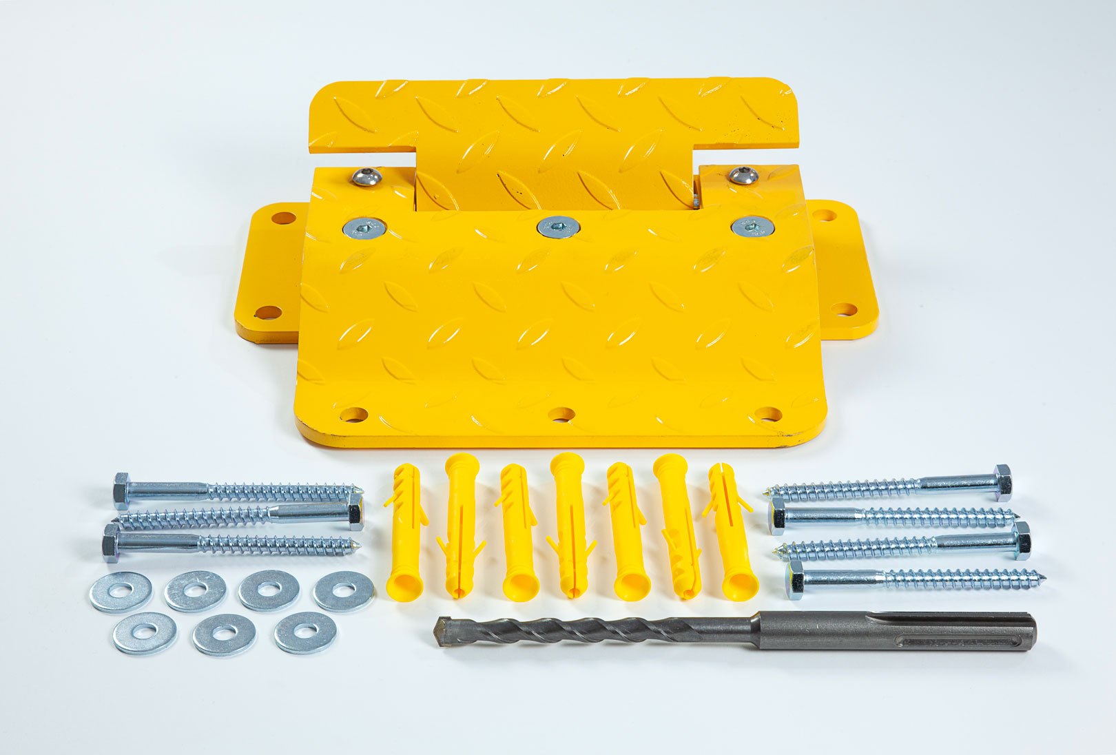 Supplied with pre-drilled fixing points and fixings for tarmac and concrete and an SDS Max drill bit.