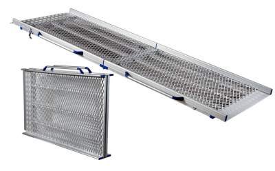 Lightweight, non-slip, portable folding loading ramps. The Anyramp is suitable for a range of different applications. Simply fold the compact loading ramp with one easy manoeuvre. With a 400kg capacity, these mesh surface folding ramps are useful for wheelchair access or light industrial trolleys.