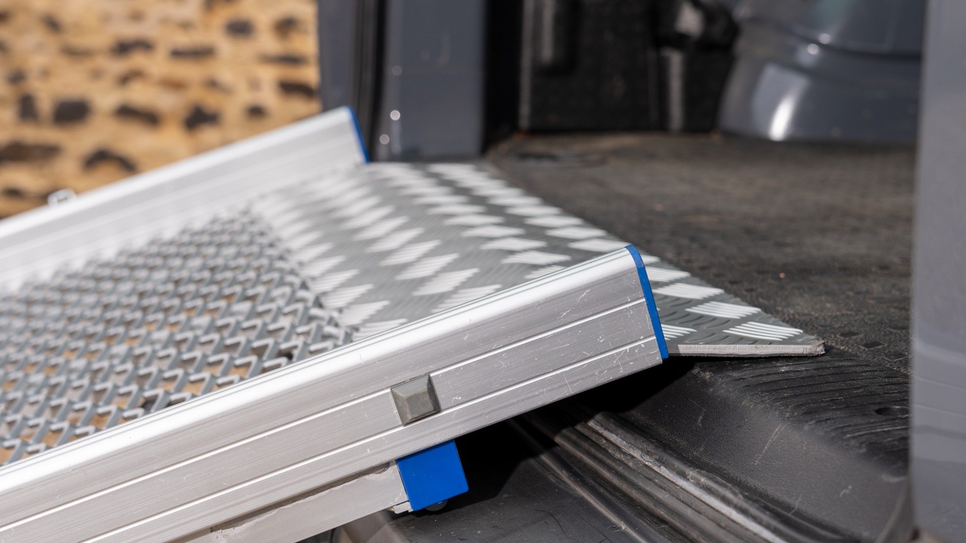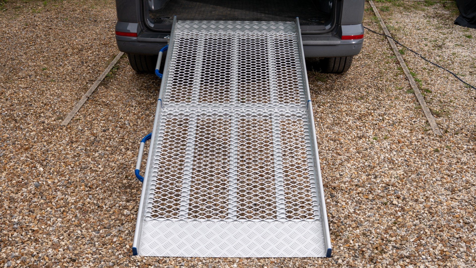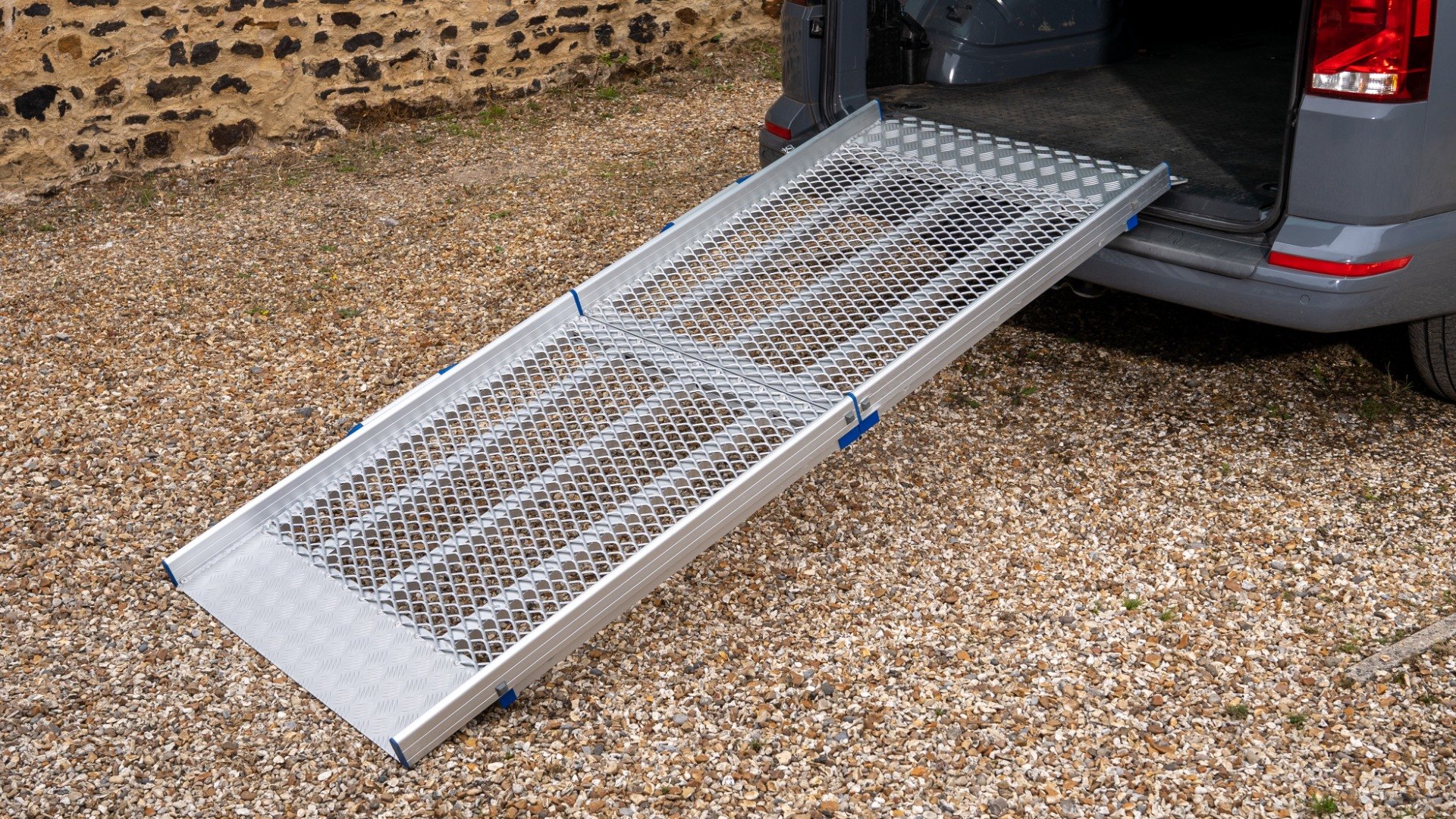 Folds to half its length for easy storage, with a secure clip to keep it closed during transit. Built-in carry handles make lifting and manoeuvring simple and safe. The lightweight aluminium ramp weighs between 11kg and 29kg, depending on the length you choose.