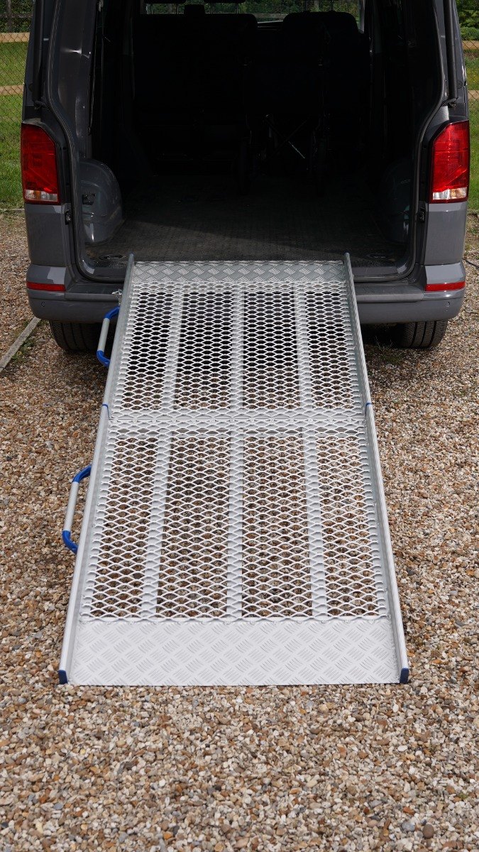 Easily load items into your van or provide wheelchair access with this premium aluminium ramp. With a durable 400kg capacity, it’s ideal for loading mobility scooters, motorbikes and equipment. Safety edges of 55mm prevent slips, while the high-traction surface—combining mesh and chequered textures—ensures secure grip.