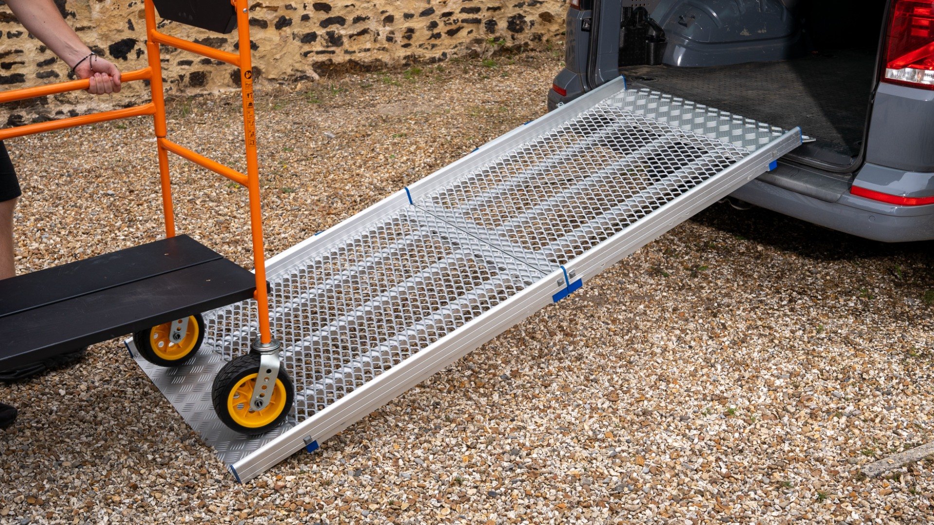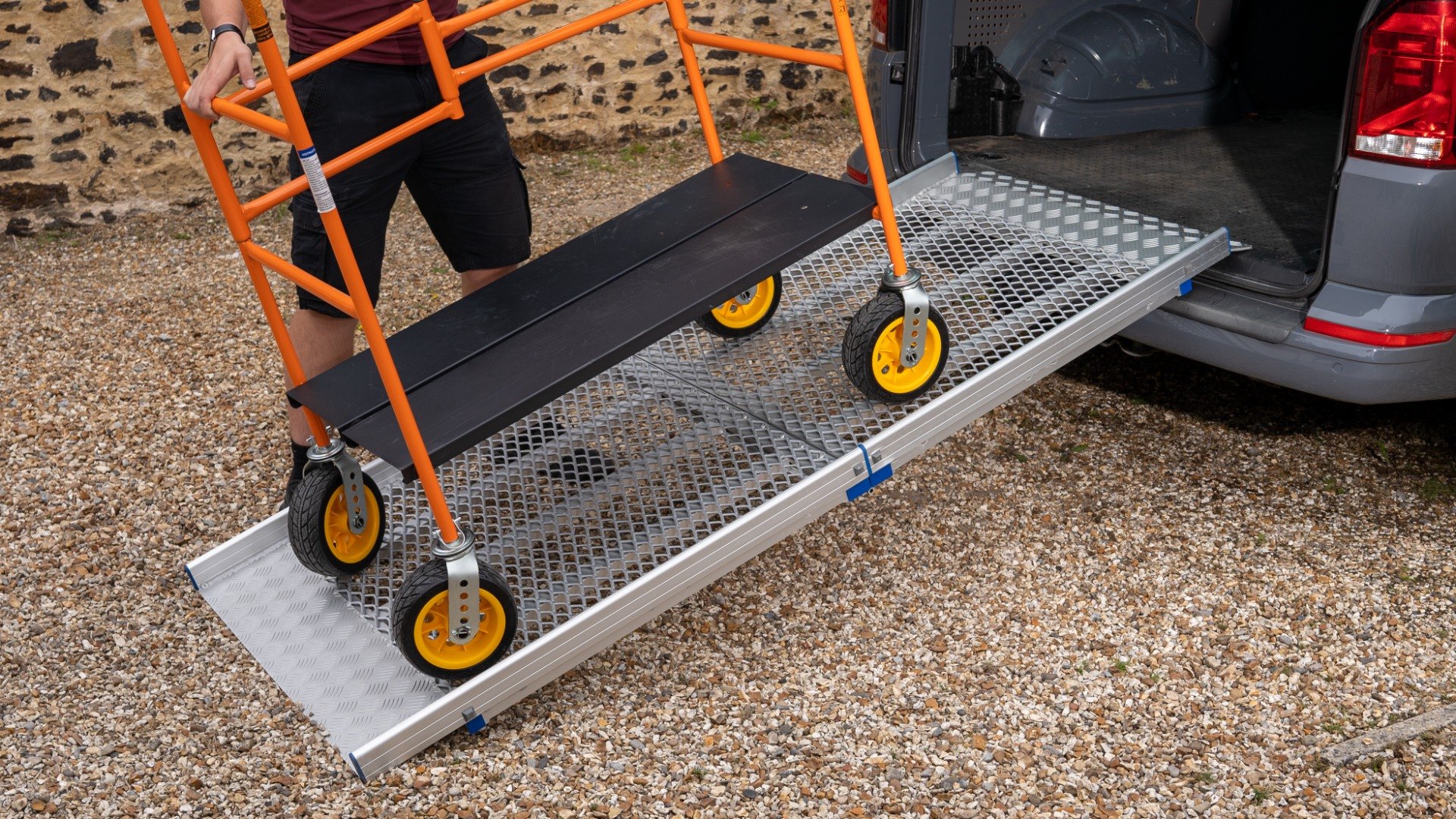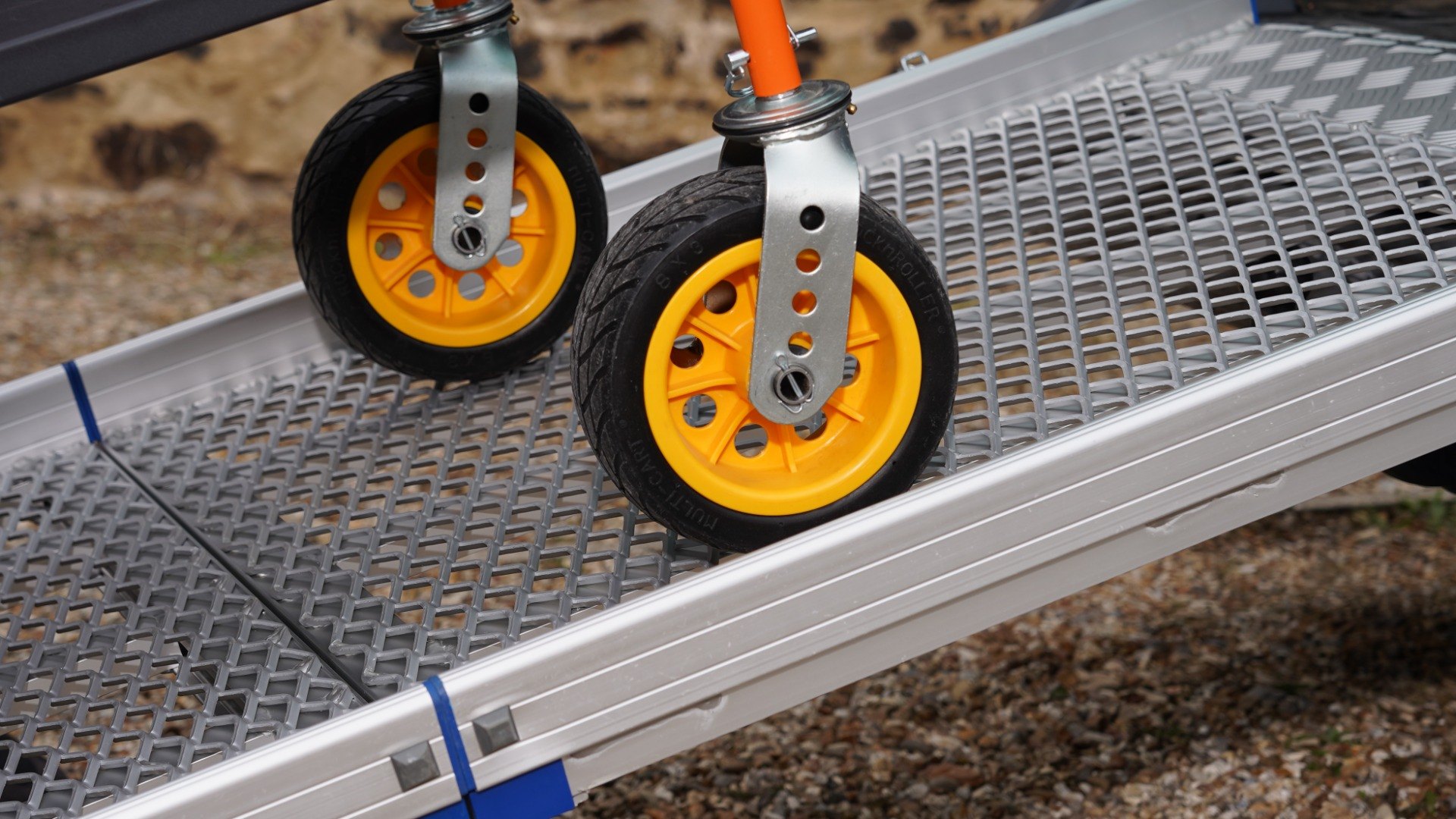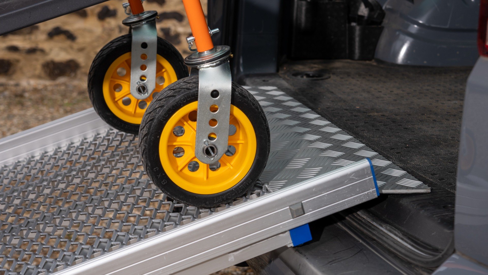 Please note, the Anyramps are designed for loading items with air-filled wheels; they are not designed for loading items with solid wheels, such as cages and pallet trucks. For loading items with solid wheels, we would suggest viewing the Viper Van Ramp or Aero-light Max.