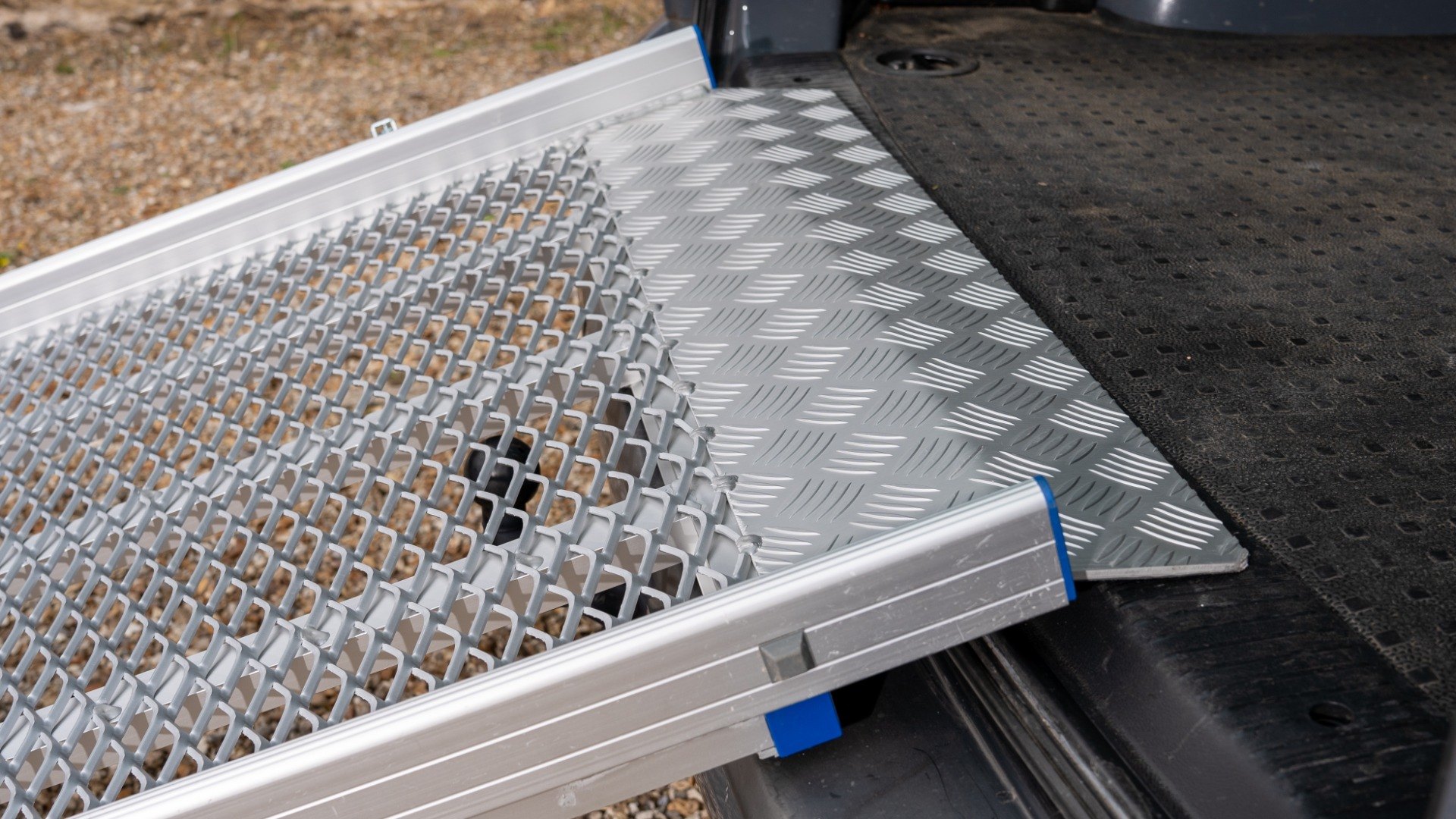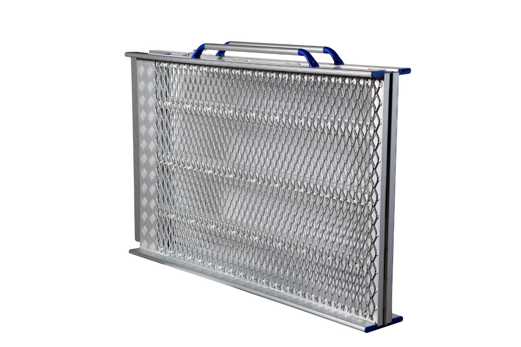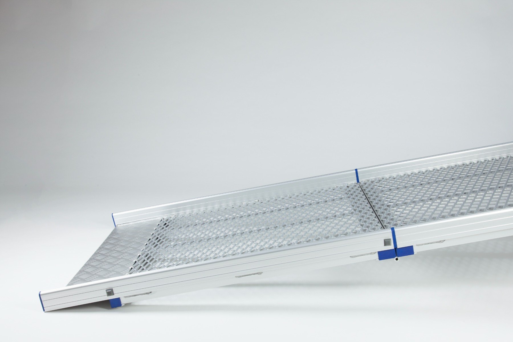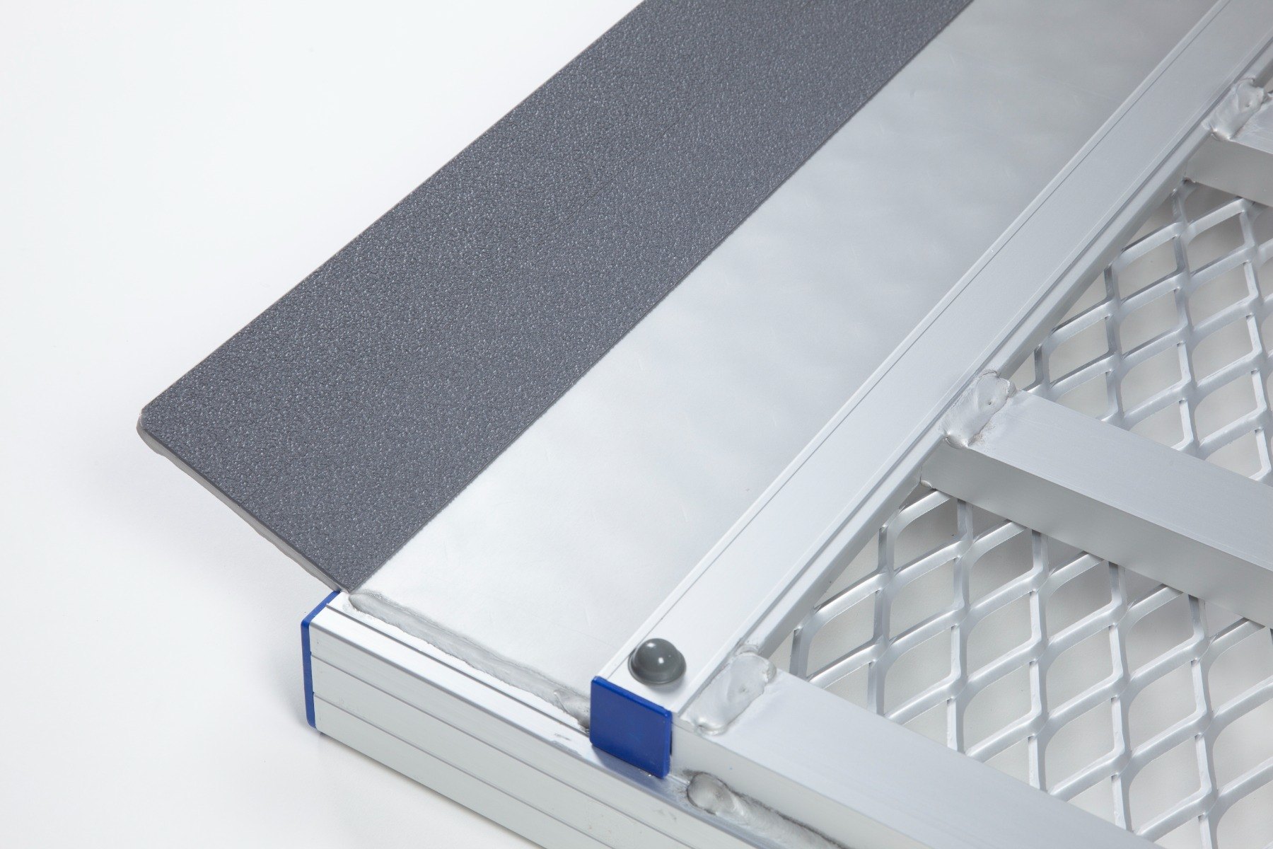 Safety edges prevent users from coming off the ramp while the high-traction surface, combining mesh and chequered textures, ensures optimum grip.