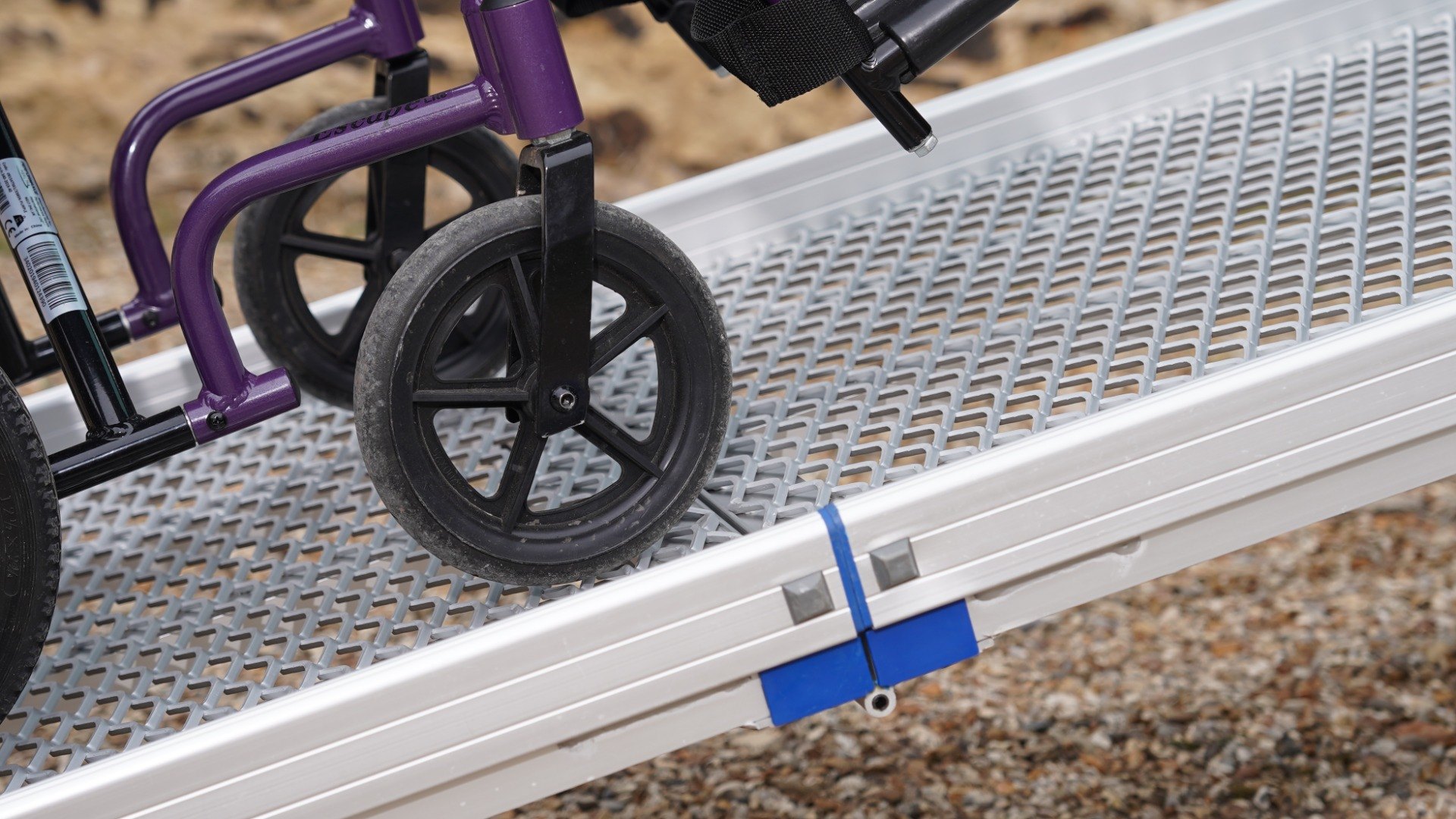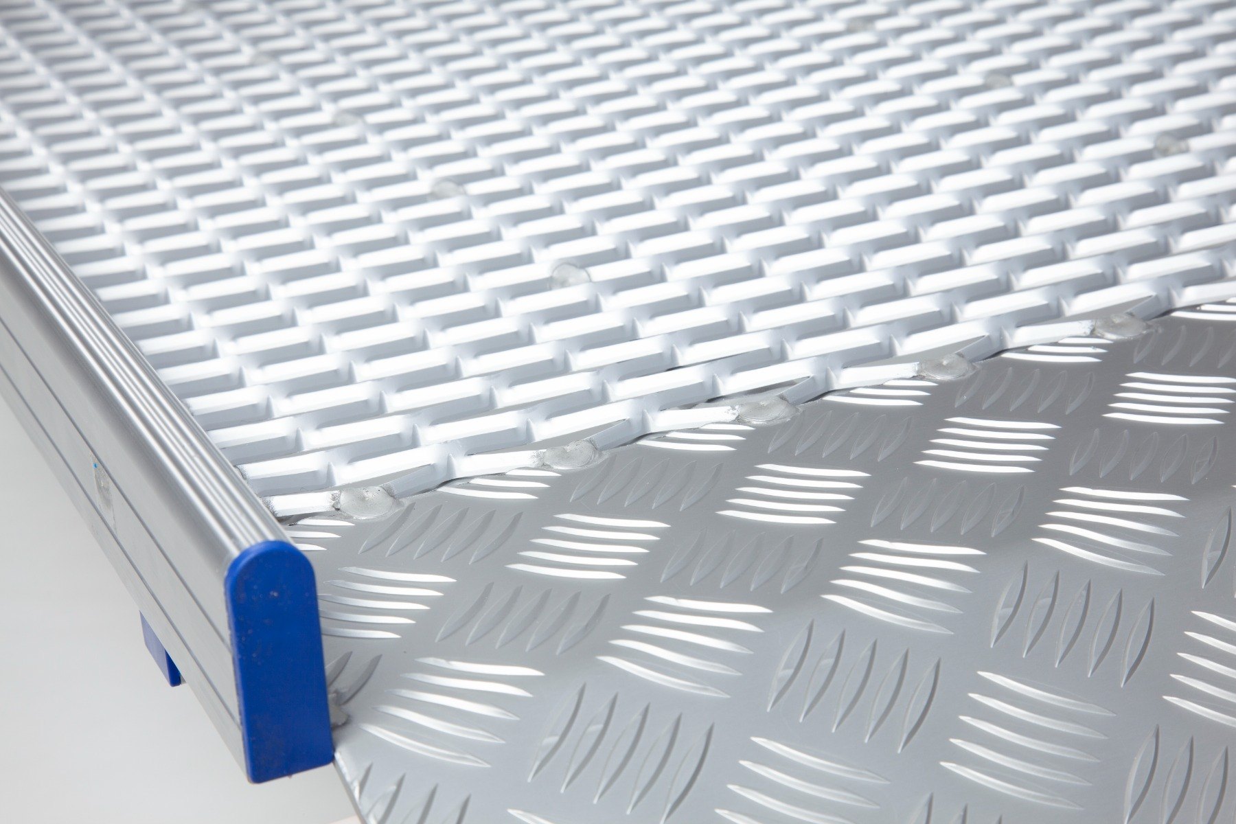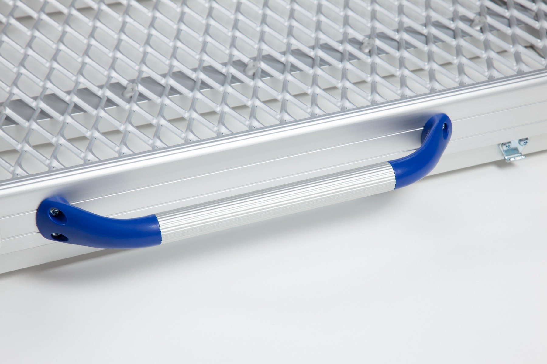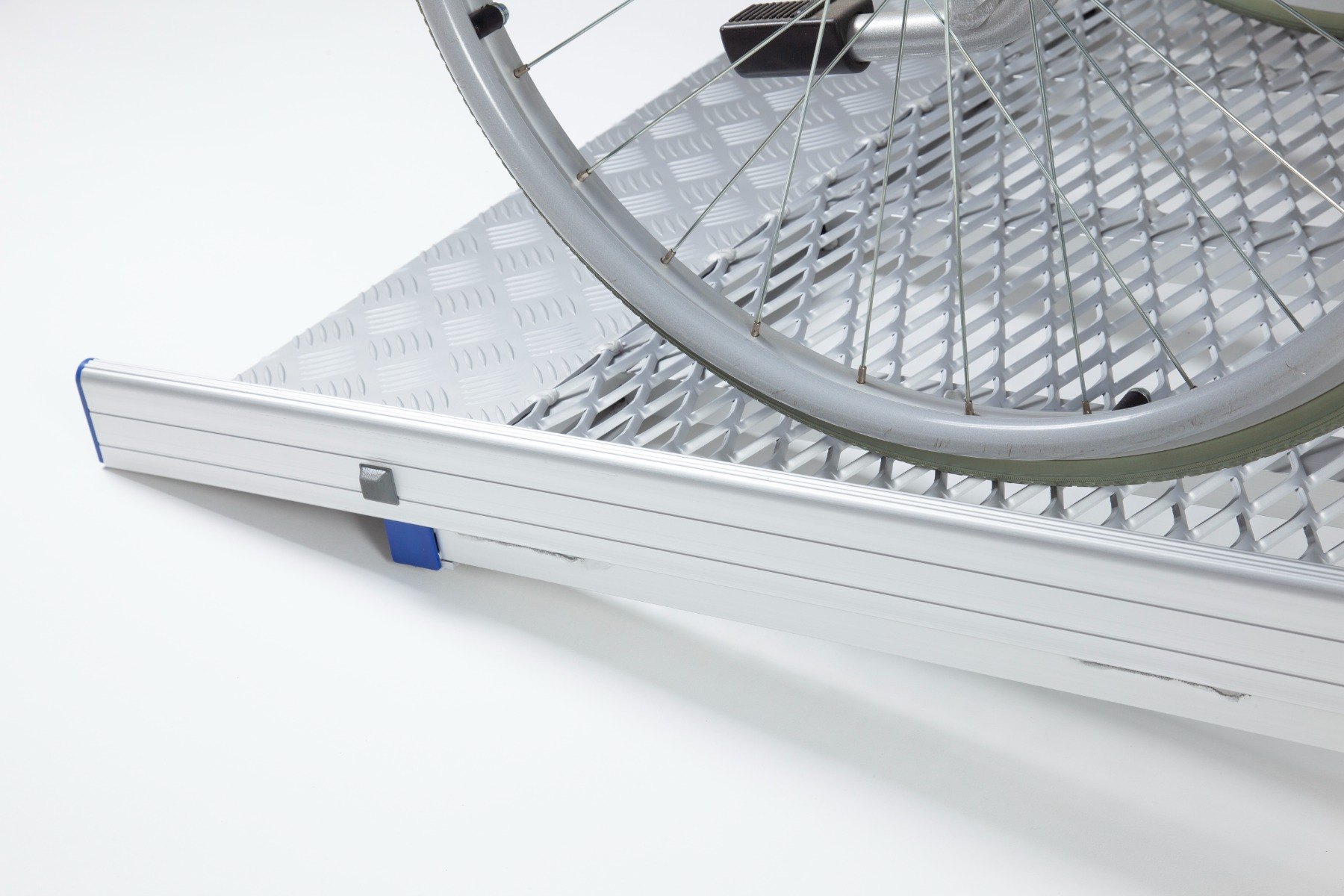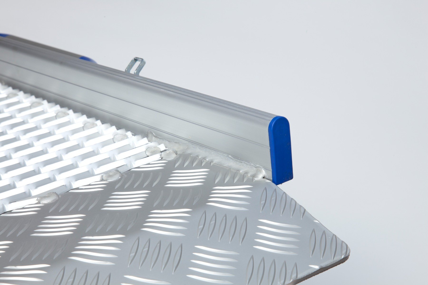 Safety edges prevent users from coming off the ramp while the high-traction surface, combining mesh and chequered textures, ensures optimum grip.