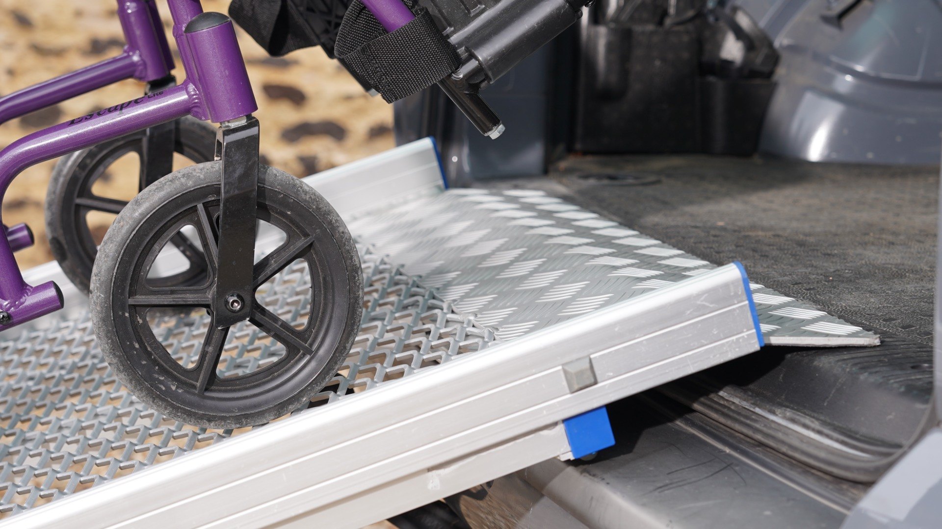 The multi-purpose ramp can also be used for safely loading goods over steps or into vans, perfect for shops and commercial sites looking to provide wheelchair access and safely load goods. The ramp can also be used to load unoccupied mobility scoooters into the car.