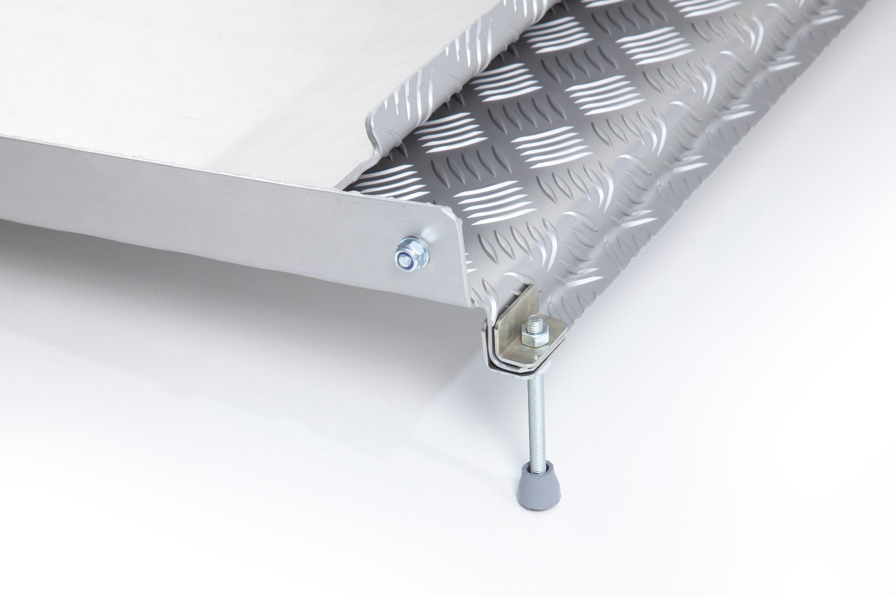 This folding drive-in ramp is designed to act as a bridge to allow users to overcome thresholds of up to 80mm. The design allows users to adjust the ramp legs to the required height and go up and over the threshold. After use, the entry plate can be flipped back onto the ramp to allow users to close the door whilst leaving the ramp in place. This ramp is suitable for mobility scooters, manual wheelchairs and electric wheelchairs.
