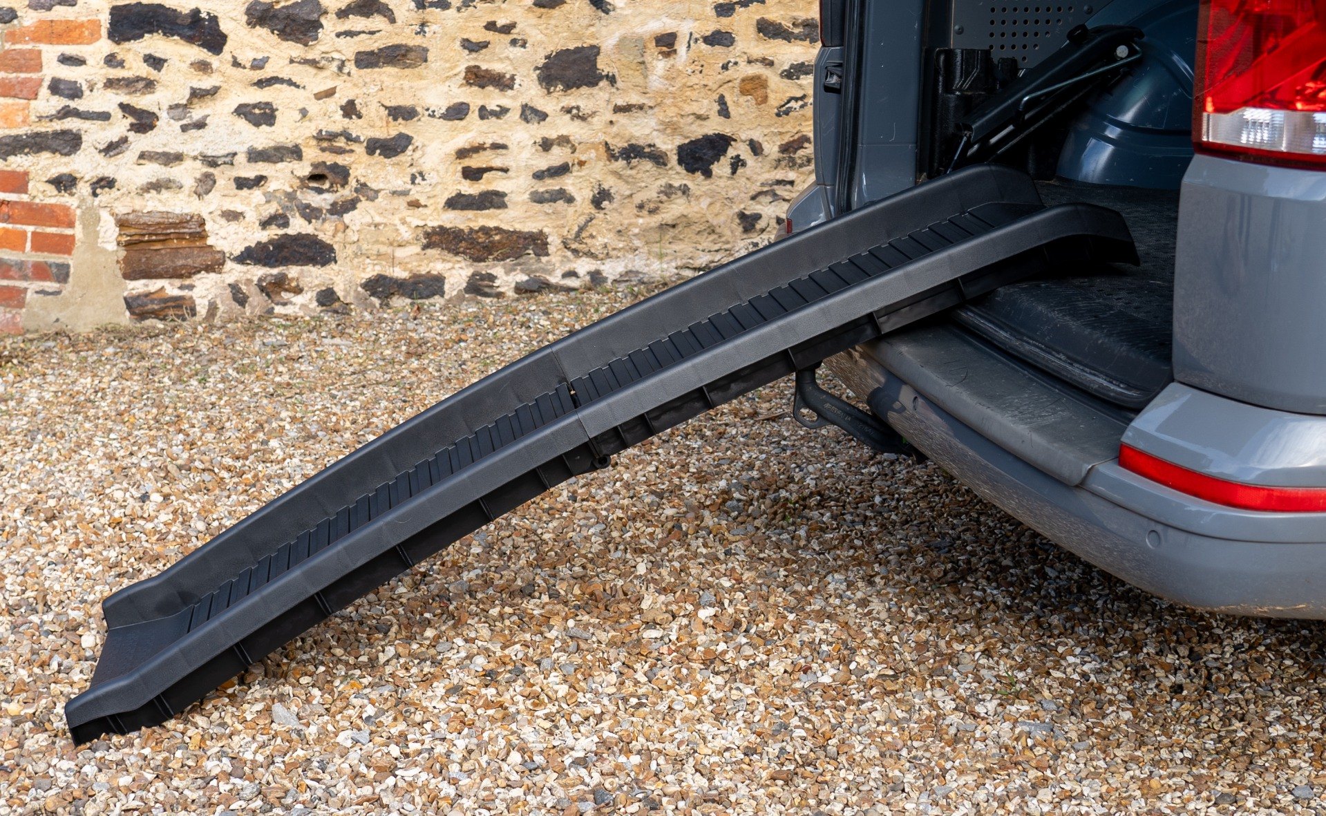 The lightweight ramp folds to half its length and clips securely shut, making it perfect for storing in the car boot.
