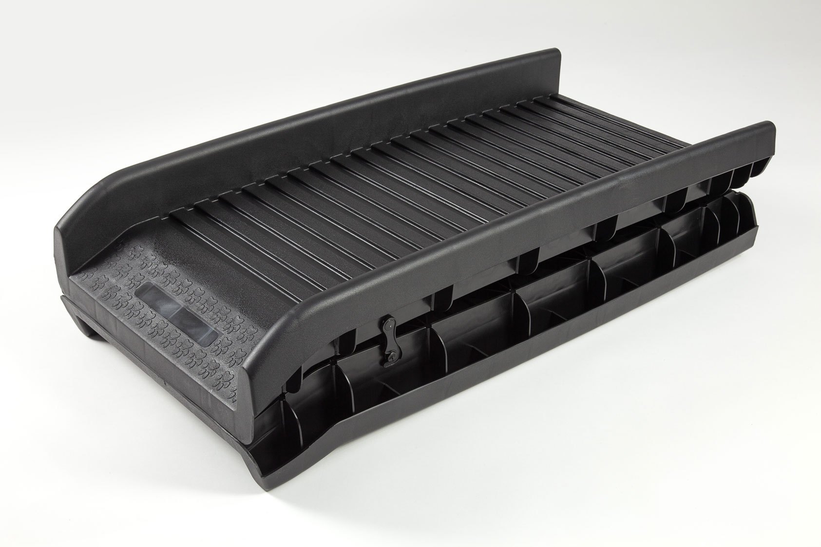 The Ramp People's black lightweight folding dog ramp is designed to allow dogs to overcome heights up to 45cm. Simply unfold the ramp and rest this on the boot of the car or step. With a 75kg capacity the ramp is suitable for small, medium and heavy dogs.