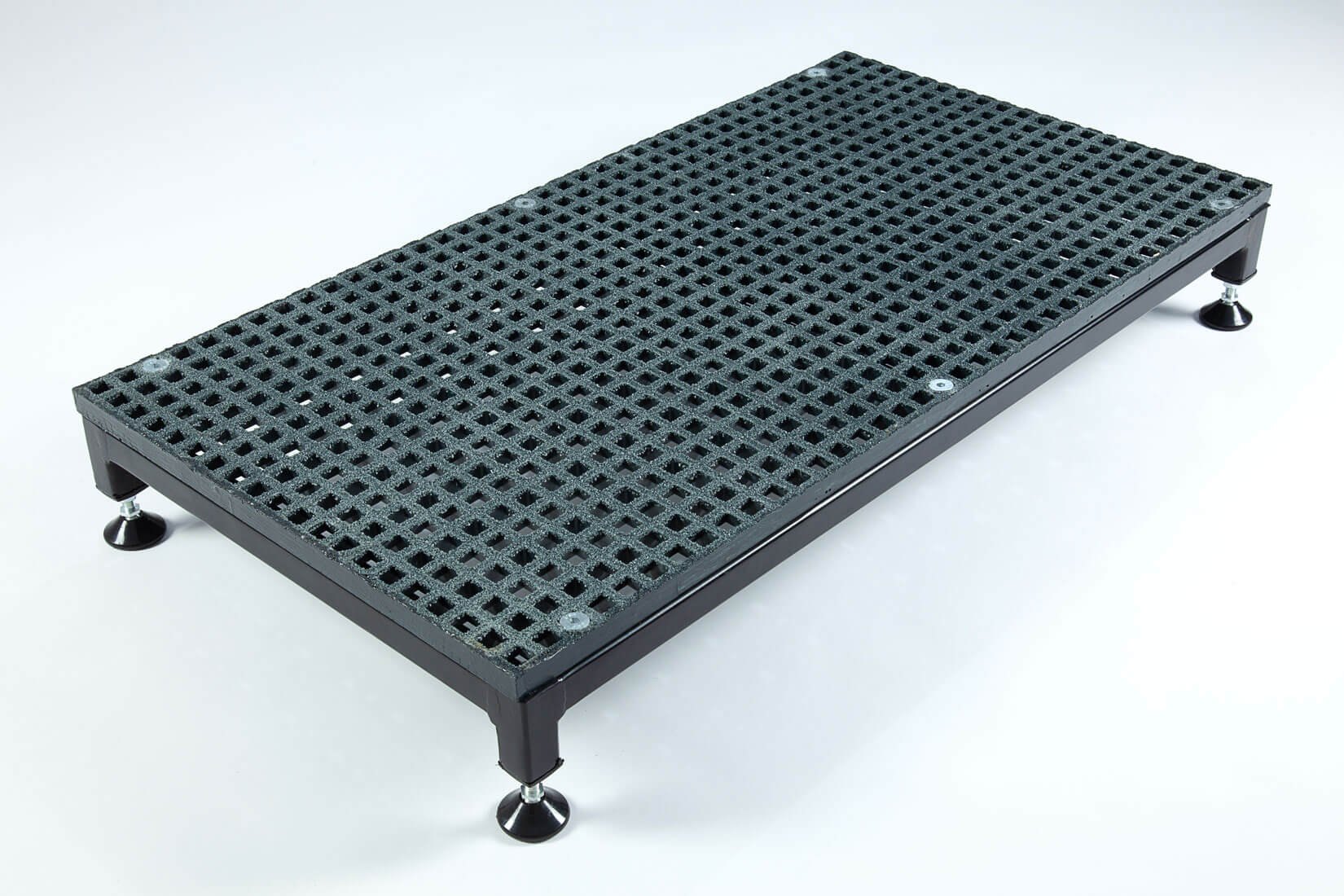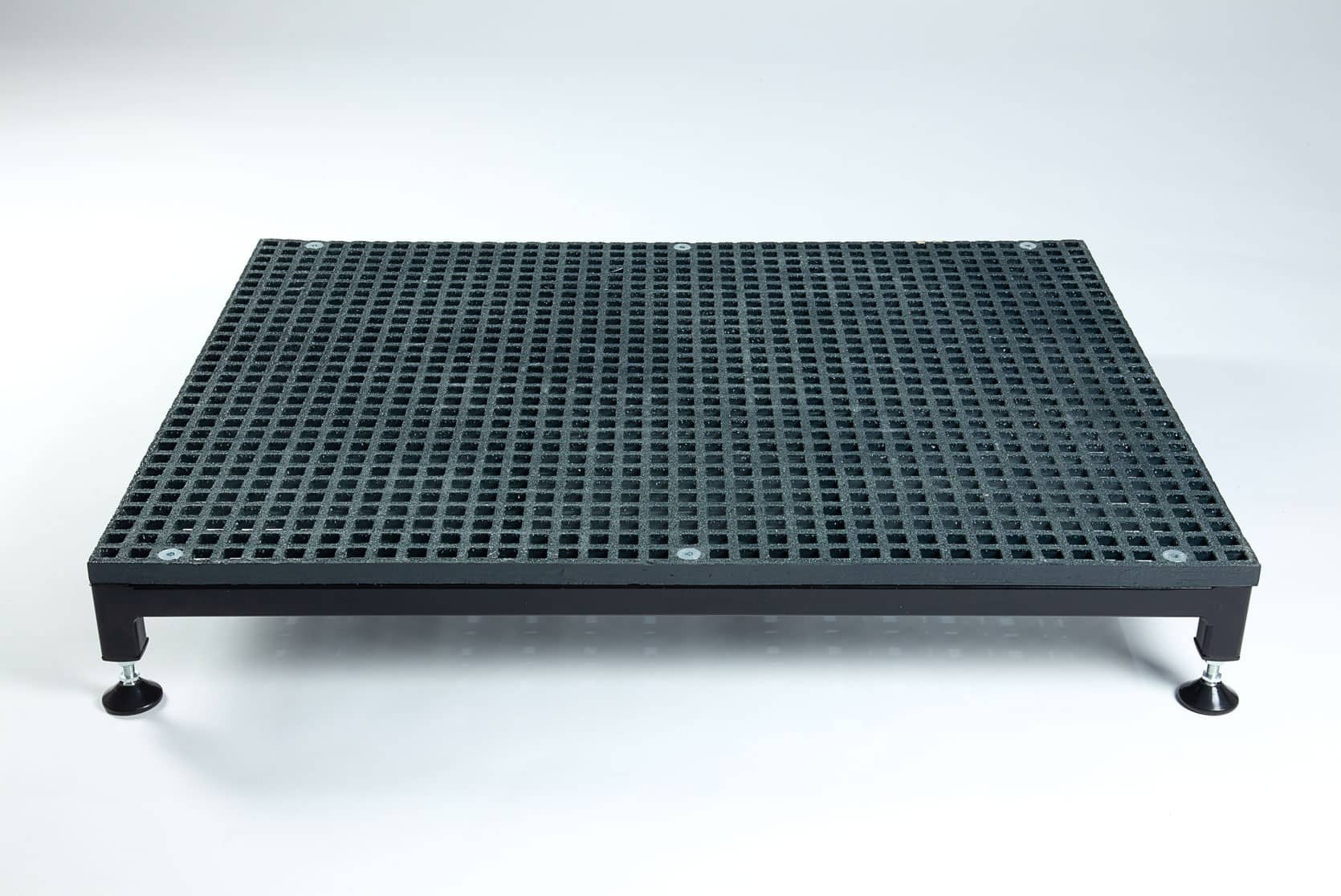 Adjustable mobility step designed to reduce the distance between steps, doorways and thresholds, in turn making it easier for the user to overcome heights. The premium half step offers a unique anti-slip, self-draining GRP grip surface which is suitable for all weathers.