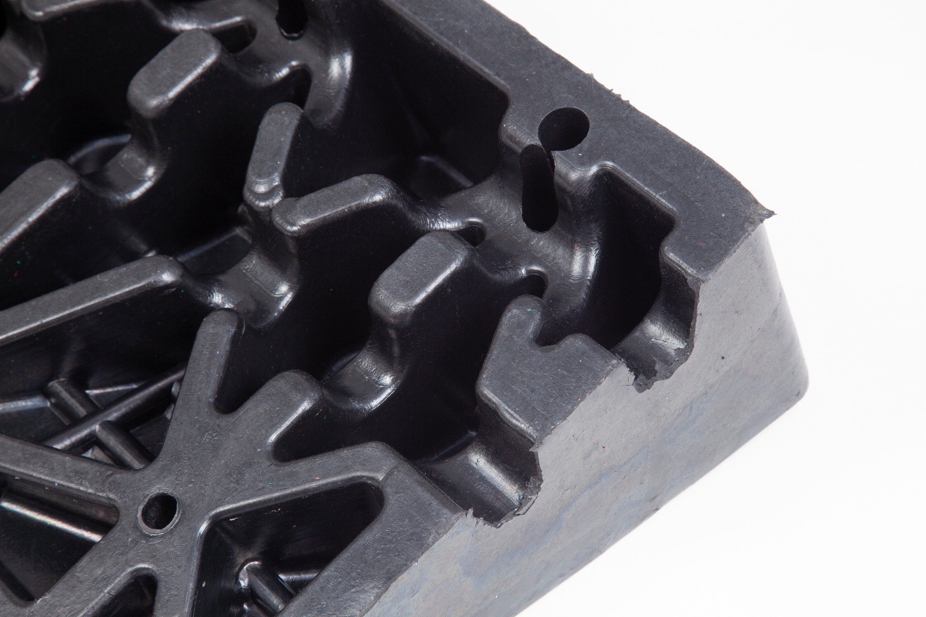 135mm Rubber Kerb Ramp with a 5,000kg capacity, perfect for allowing motorbikes, cars, garden machinery and more to overcome steps or access sheds, conatiners and garages. The ramp has 2 channels to allow cables and hoses to pass below the ramp. Use as a portable ramp or fixed ramp.