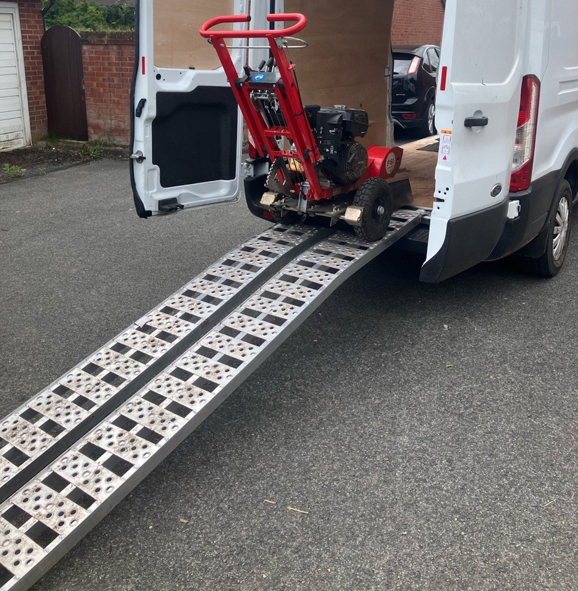 - Pair of aluminium loading ramps suitable for loading lawnmowers, ATV/quad bikes, dirt bikes and other wheeled garden machinery into vans and over steps
