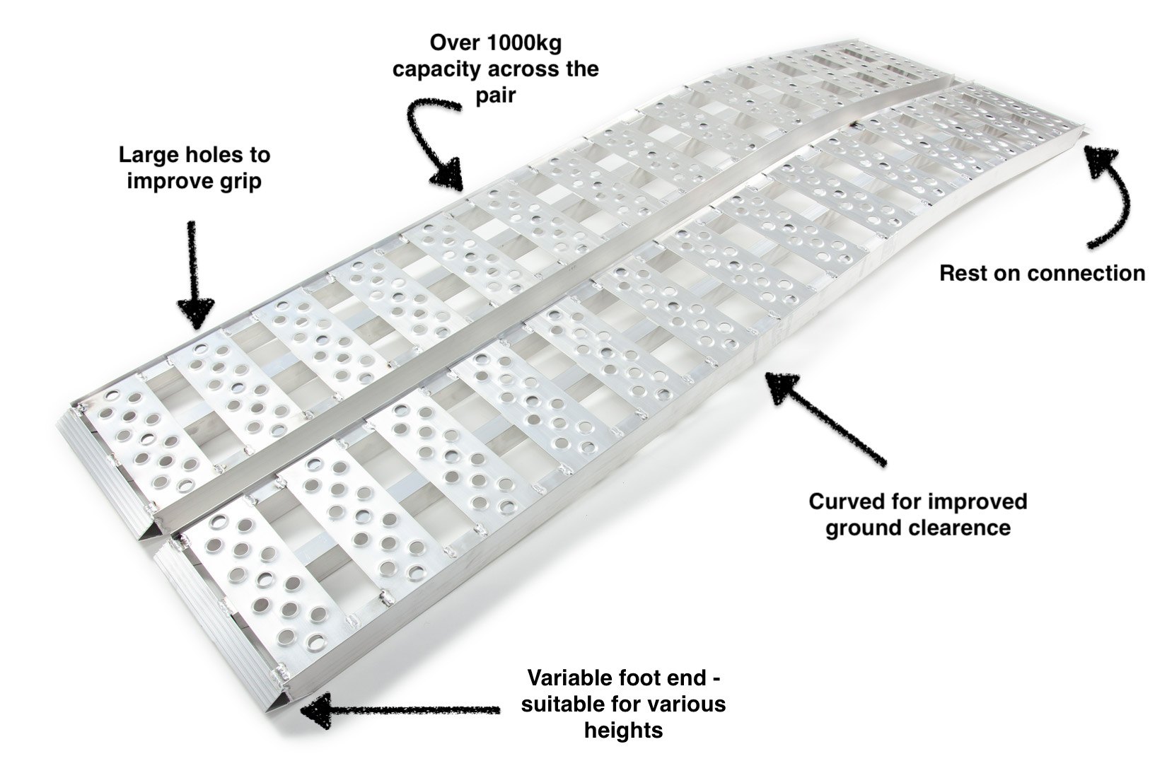 - Lightweight and portable for easy handling, each ramp weighs between 7.1kg - 10kg depending on your chosen ramp length