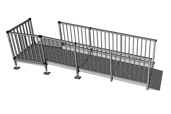 We have a dedicated modular team available to provide advice around modular wheelchair ramps. Please email pictures and measurements of your area to our team for recommendations or a custom quote if required. Examples of customisations include: adding steps to the side of the ramp, an additional platform, U-shaped handrails at the end of the ramp, contrast markers for those with impaired vision, longer ramp lengths, alternative ground connections and more.