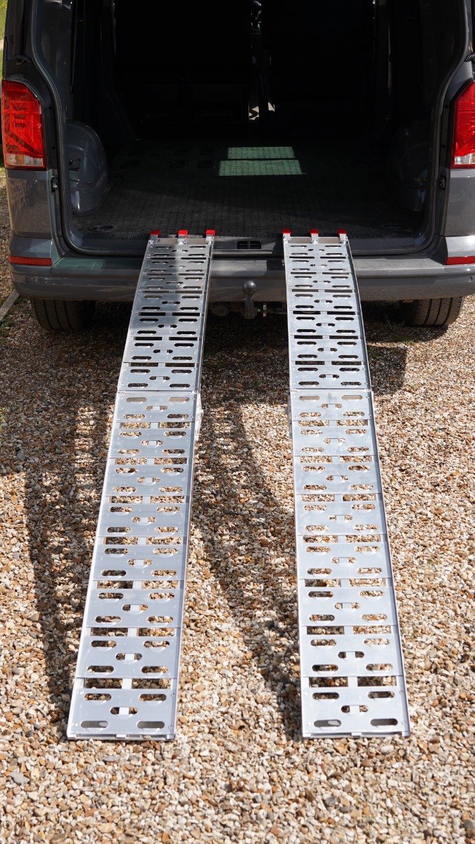- No installation required, simply rest the aluminium loading ramps onto your van, trailer or steps and start loading