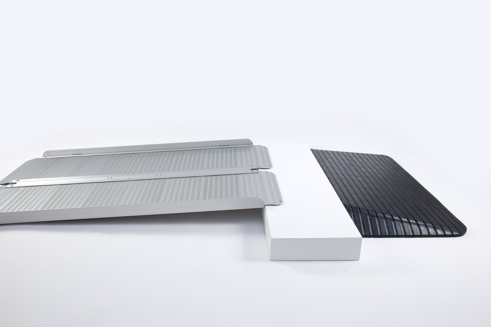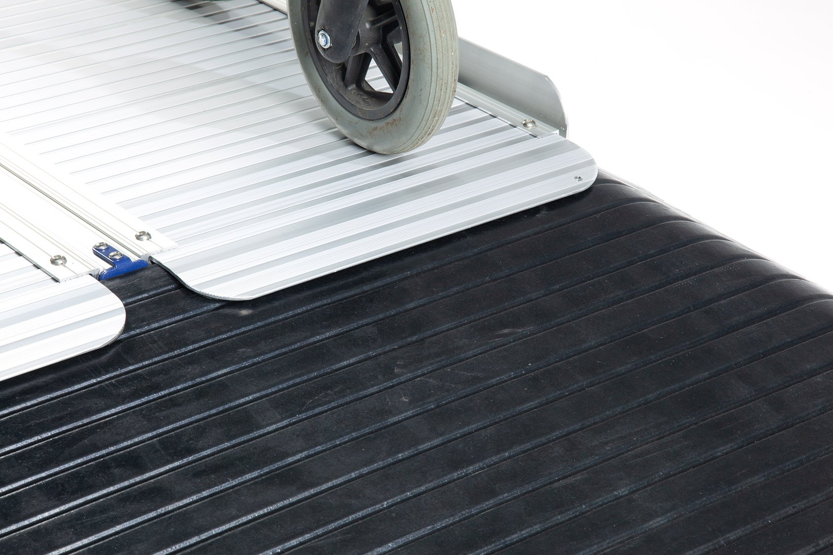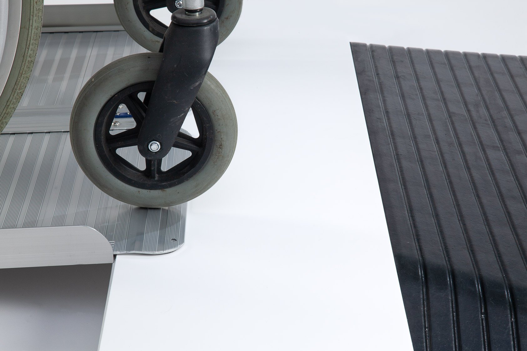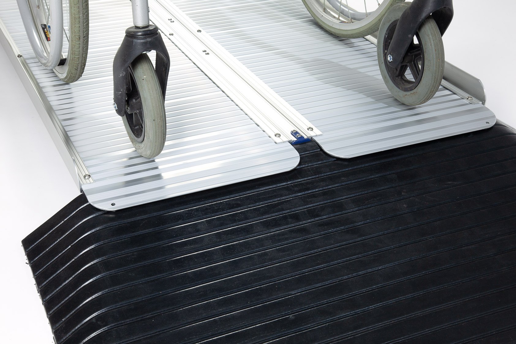 The aluminium ramp works perfectly with the rubber ramp to safely bridge doorways and thresholds.