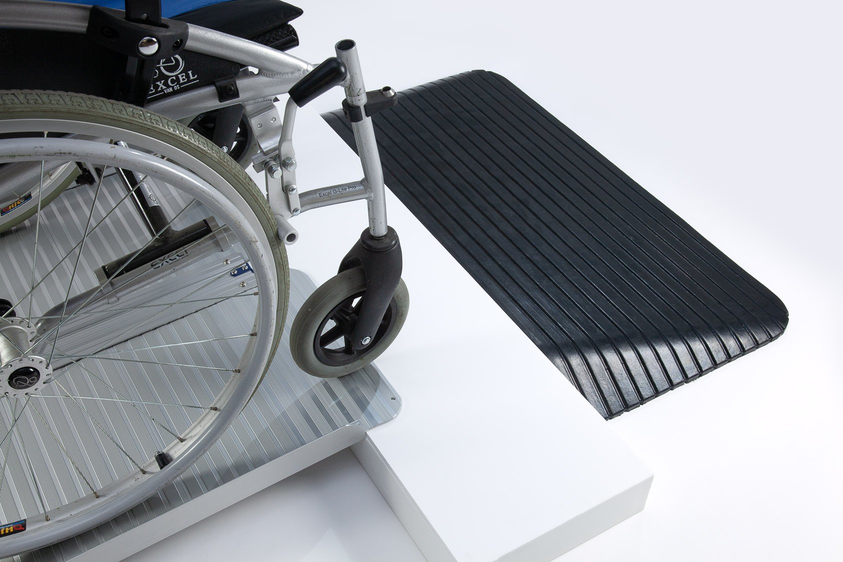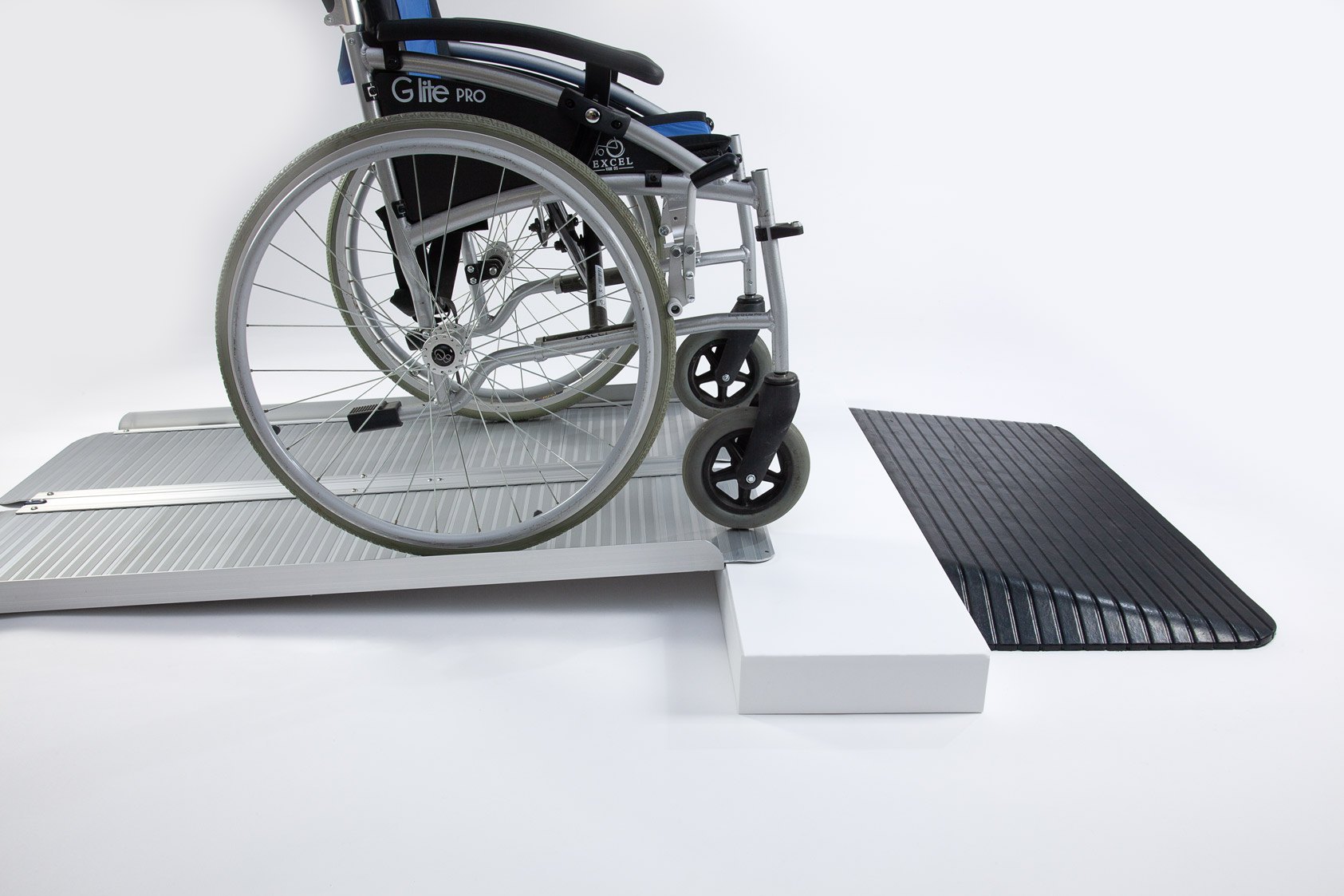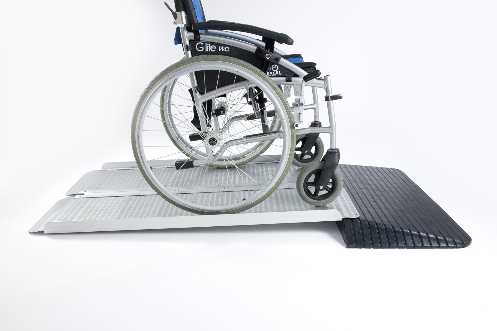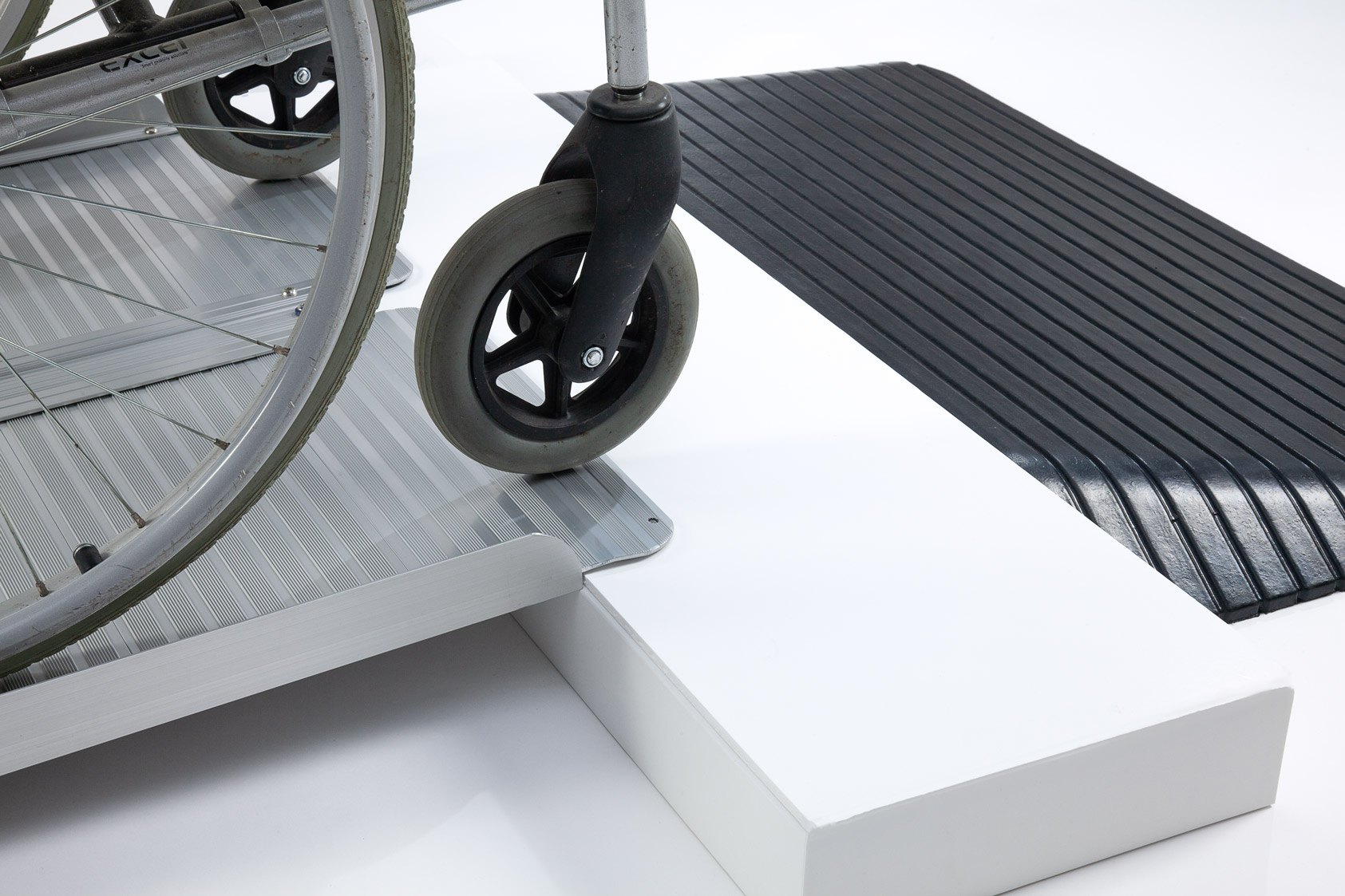 The aluminium ramp works perfectly with the rubber ramp to safely bridge doorways and thresholds.