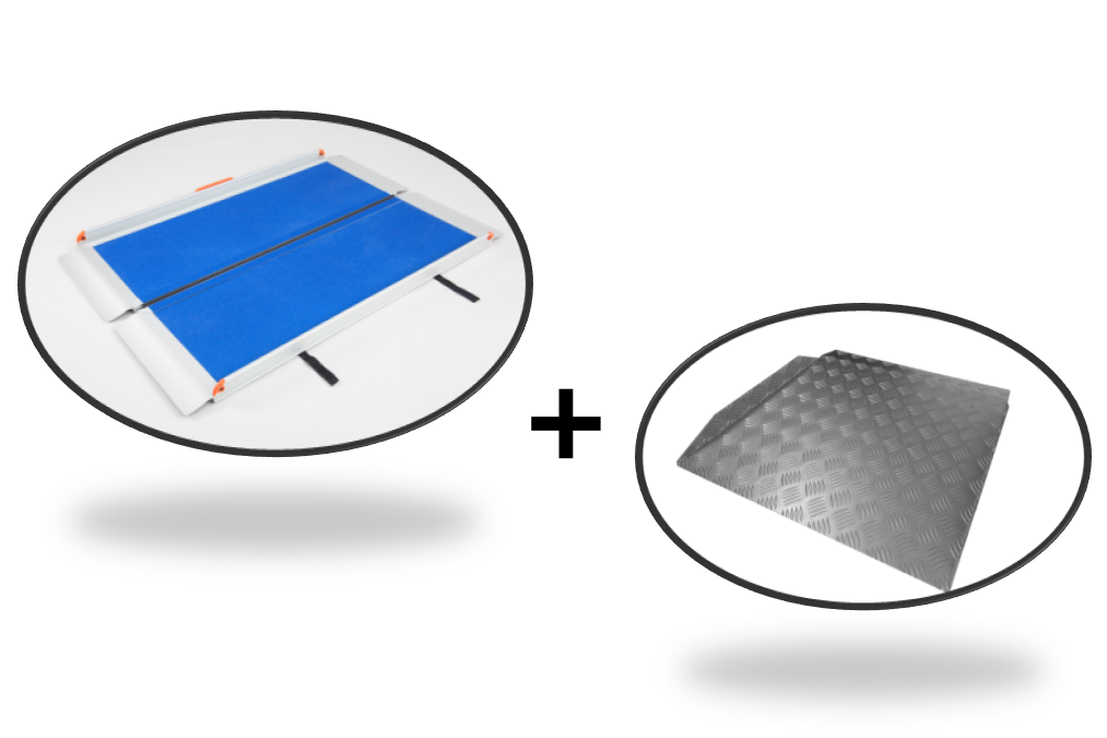 Premium length folding ramp in combination with our standard Aluminium threshold used as a kit will combine the best of 2 ramps to provide a quick and easy ramp solution for access up to and over the threshold.