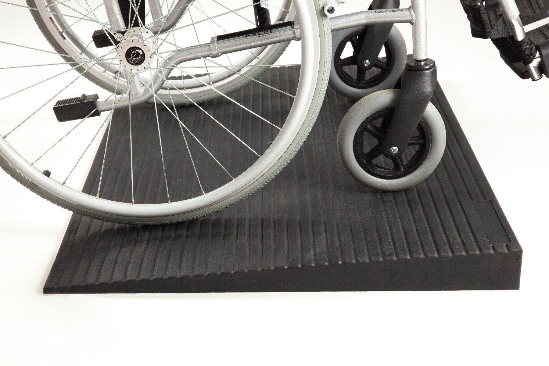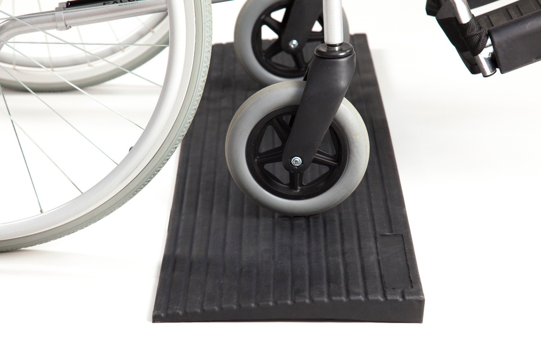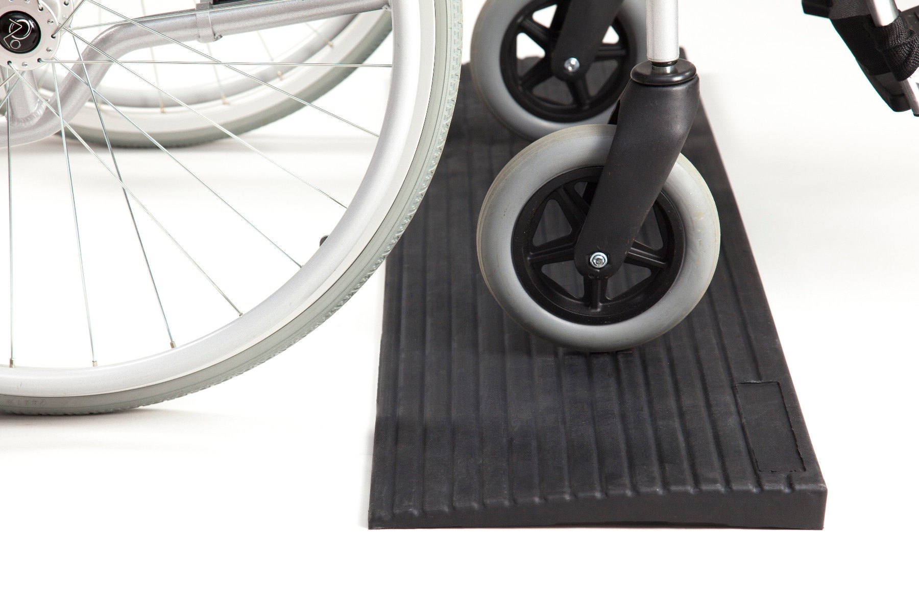 Designed and built to a 1 in 10 gradient. Made from 100% recycled rubber. These rubber threshold ramps/rubber strips are extremely high quality with a 500kg loading capacity. Designed for getting up any kind of small step or threshold they are durable, strong, non-slip and versatile. Available in the heights between 32mm/1.25" and 70mm/2.76". All heights come in 1000mm wide strips for easy set up to your threshold.