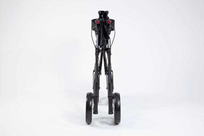 Locks securely when folded.The built-in carry handle allows you to easily lift the rollator.