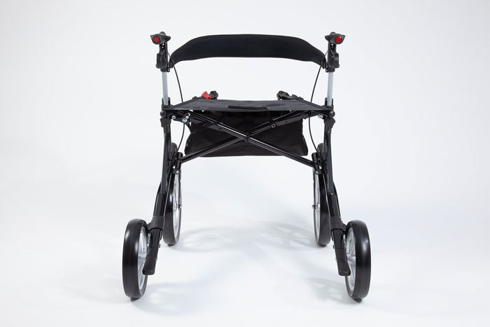 - Ergonomic handle for use when carrying the rollator