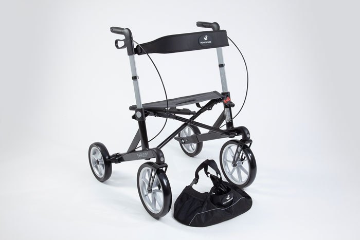 The Rehasense Server XC Explorer is a heavy duty 4-wheeled rollator designed specifically for exploring the outdoors. With large front wheels to navigate obstacles, this folding all terrain walker offers adjustable handles, a seat, a backrest and a removable shopping bag. It features reflectors for increased visibility, a walking stick holder, and an handle for easy transport. Lightweight yet durable, it supports up to 200kg and folds easily for storage. Available in two sizes. Includes a 2-year warranty.