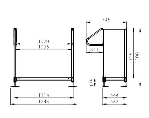 • Easy assembly, simply screw step/tread and handrails. Total height with handrails is 1100mm