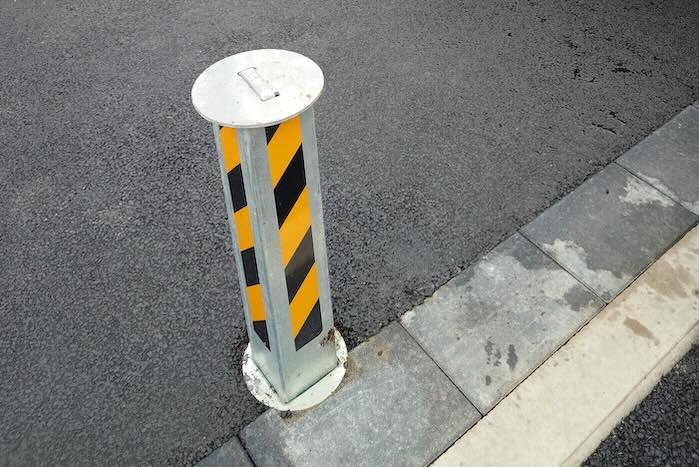 When not in use, the bollard lies flush with the ground, allowing vehicles, including cars with low clearance, to pass over it easily. The design also ensures the bollard does not become a trip hazard for pedestrians.