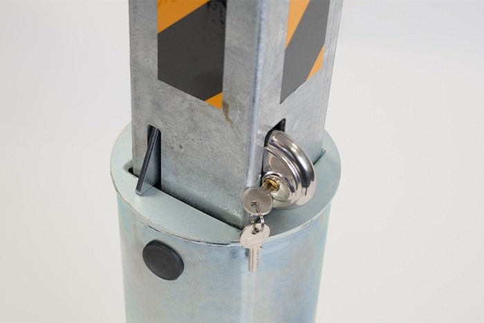 • Provided with a padlock and two keys to secure the bollard in place when required