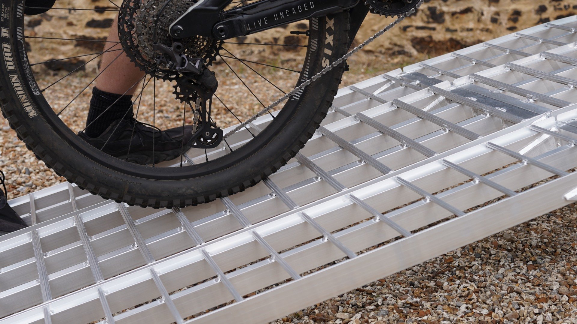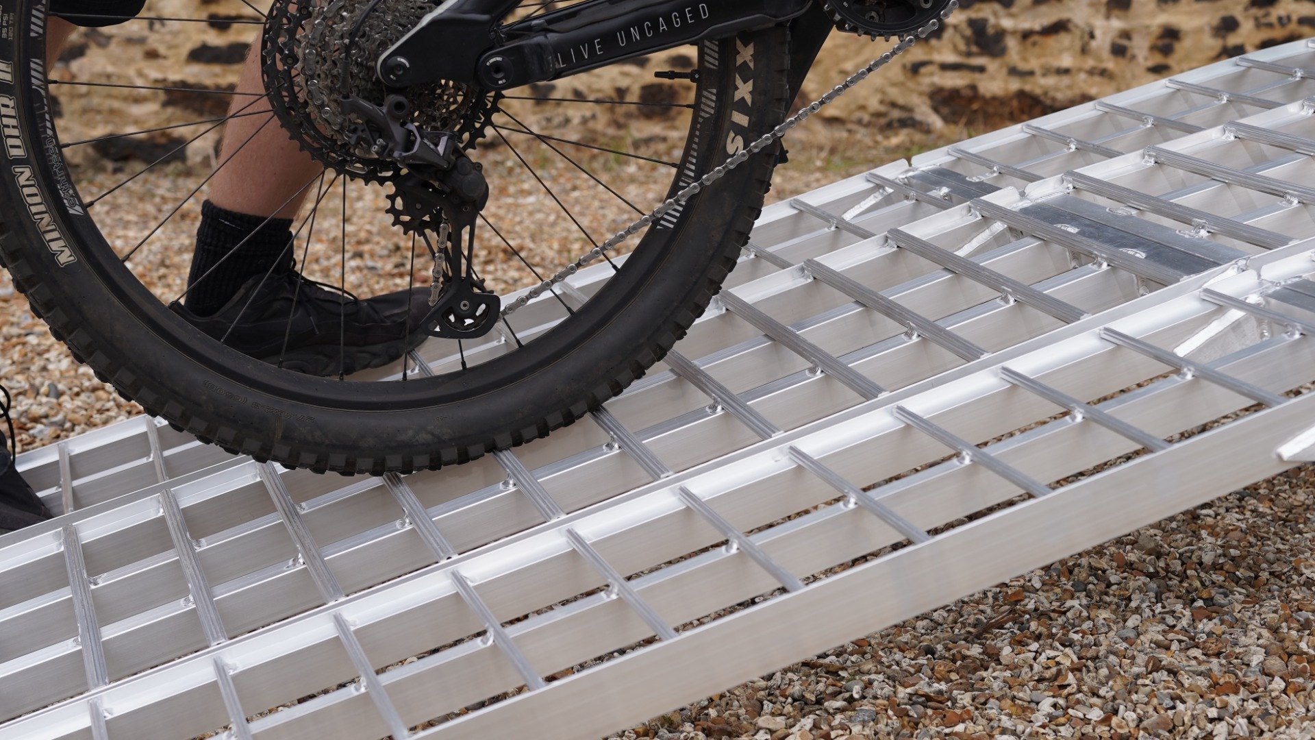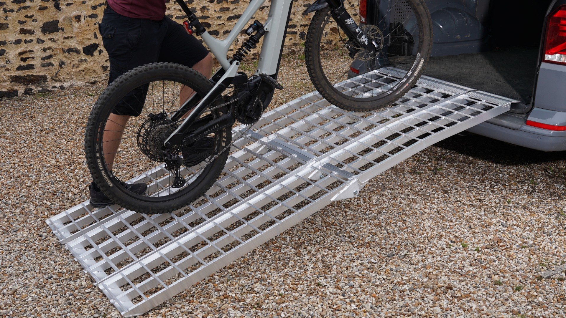 The middle ramp has a maximum capacity of 680kg for the bike itself, the outer sections have a maximum capacity across the pair of 545kg for the person who is pushing the bike up the ramps.