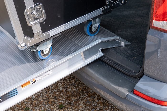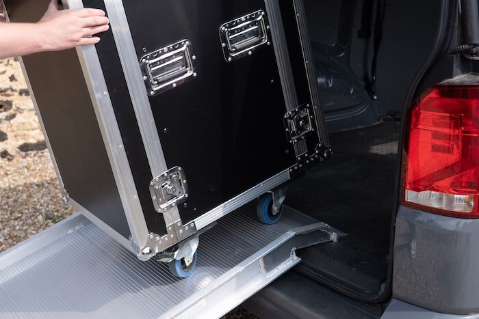 Perfect commercial use, the solid aluminium van ramp provides a reliable, portable solution to allow you to safely load equipment, goods and flightcases in and out of vans. Ideal for professionals working in events, logistics and removals who regularly need to safely load and unload items in and out of the van.