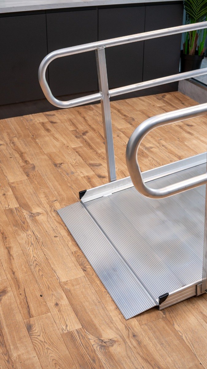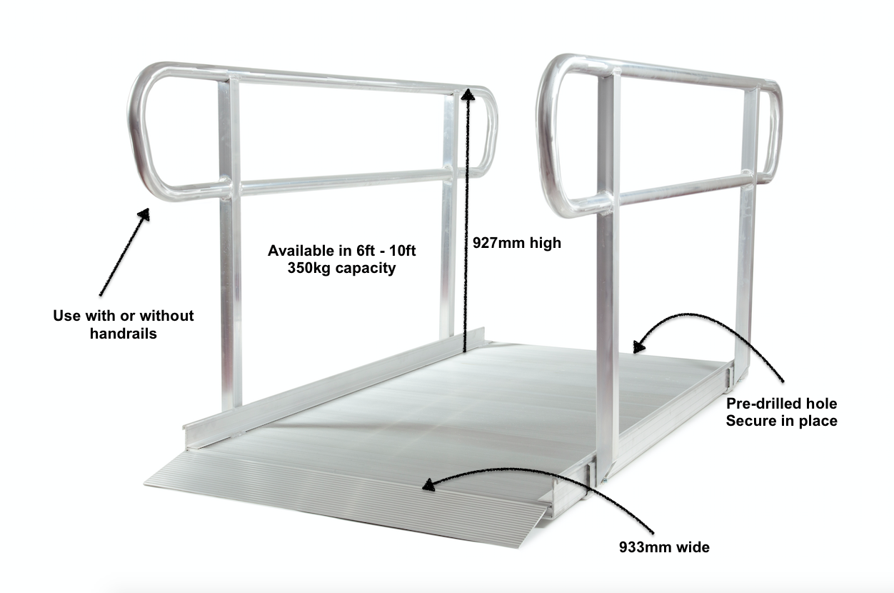 The durable ramp has a 350kg capacity and is available with a usable width of up to 888 mm, making it suitable for all mobility aids.